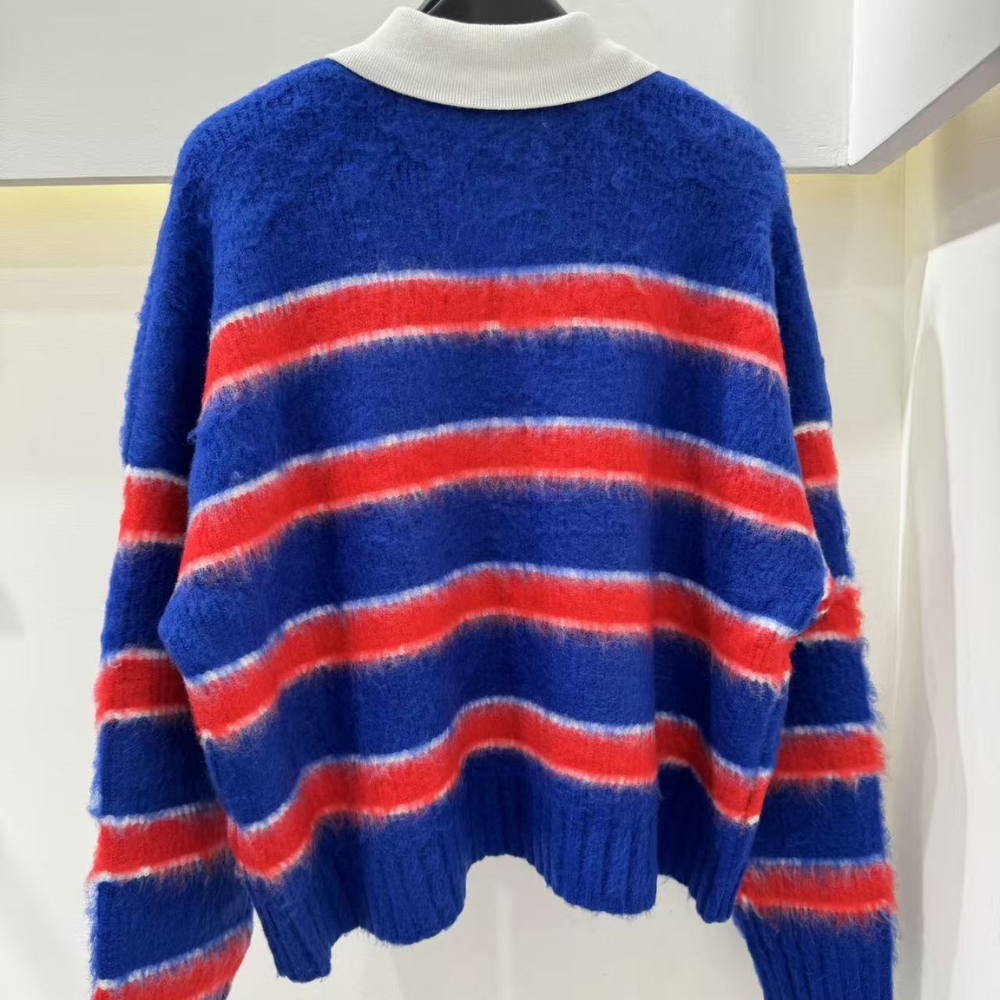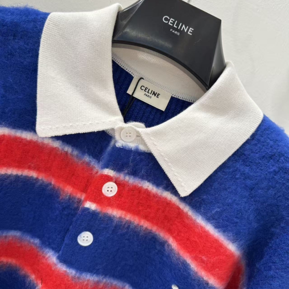 / CELINE POLO SWEATER IN BRUSHED STRIPED COTTON BLUE AND RED RY0FQ0ZQJ GBT8
