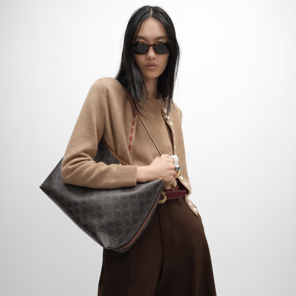The Celine Soft Shopper Bag in Triomphe Canvas is a sophisticated and practical tote designed for everyday luxury. Crafted from the iconic Triomphe canvas with leather trimmings, it features a spacious silhouette that effortlessly accommodates daily essentials. The bag’s relaxed, open-top design is secured by a snap button closure and finished with adjustable leather shoulder straps for personalized comfort.