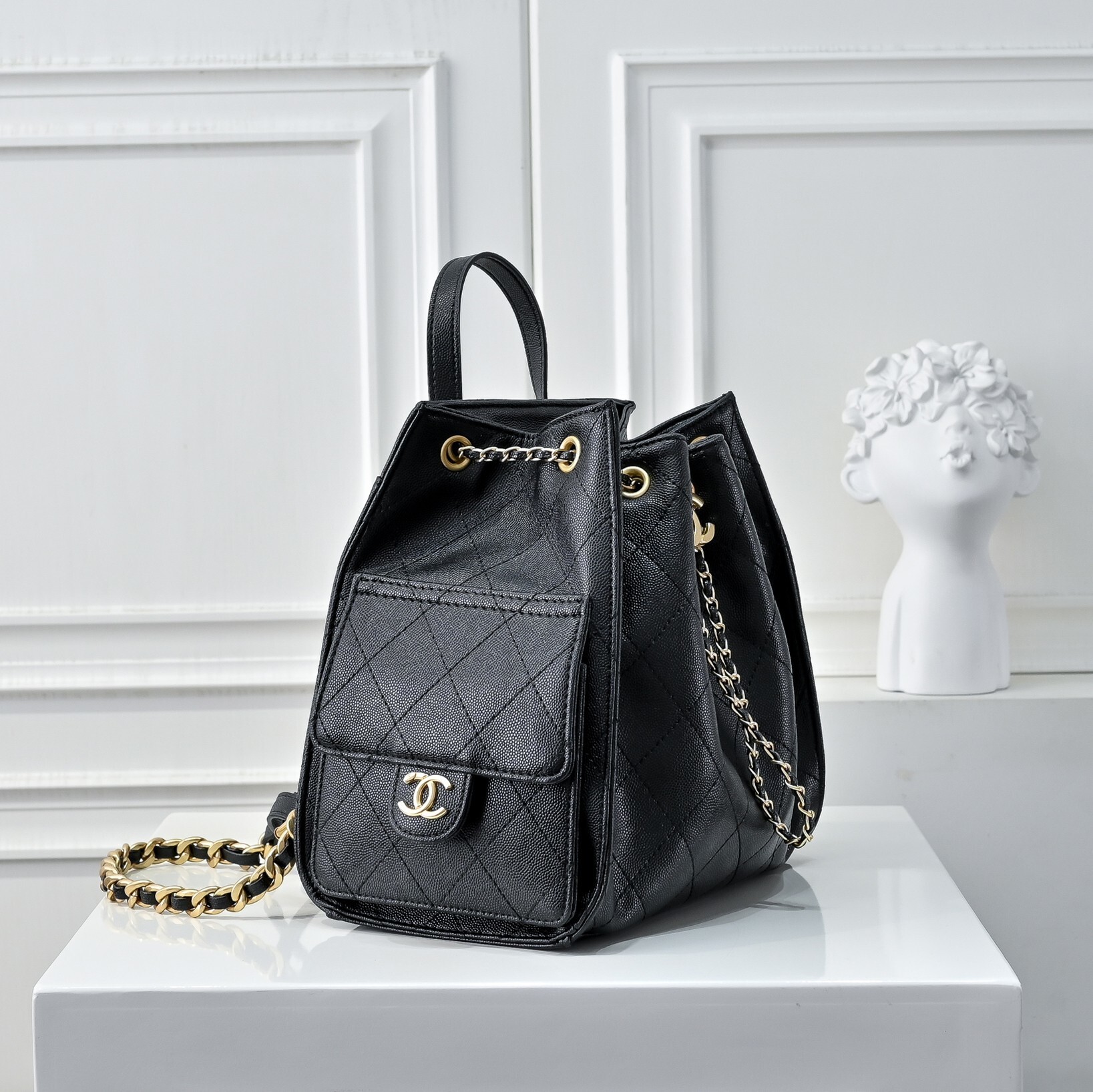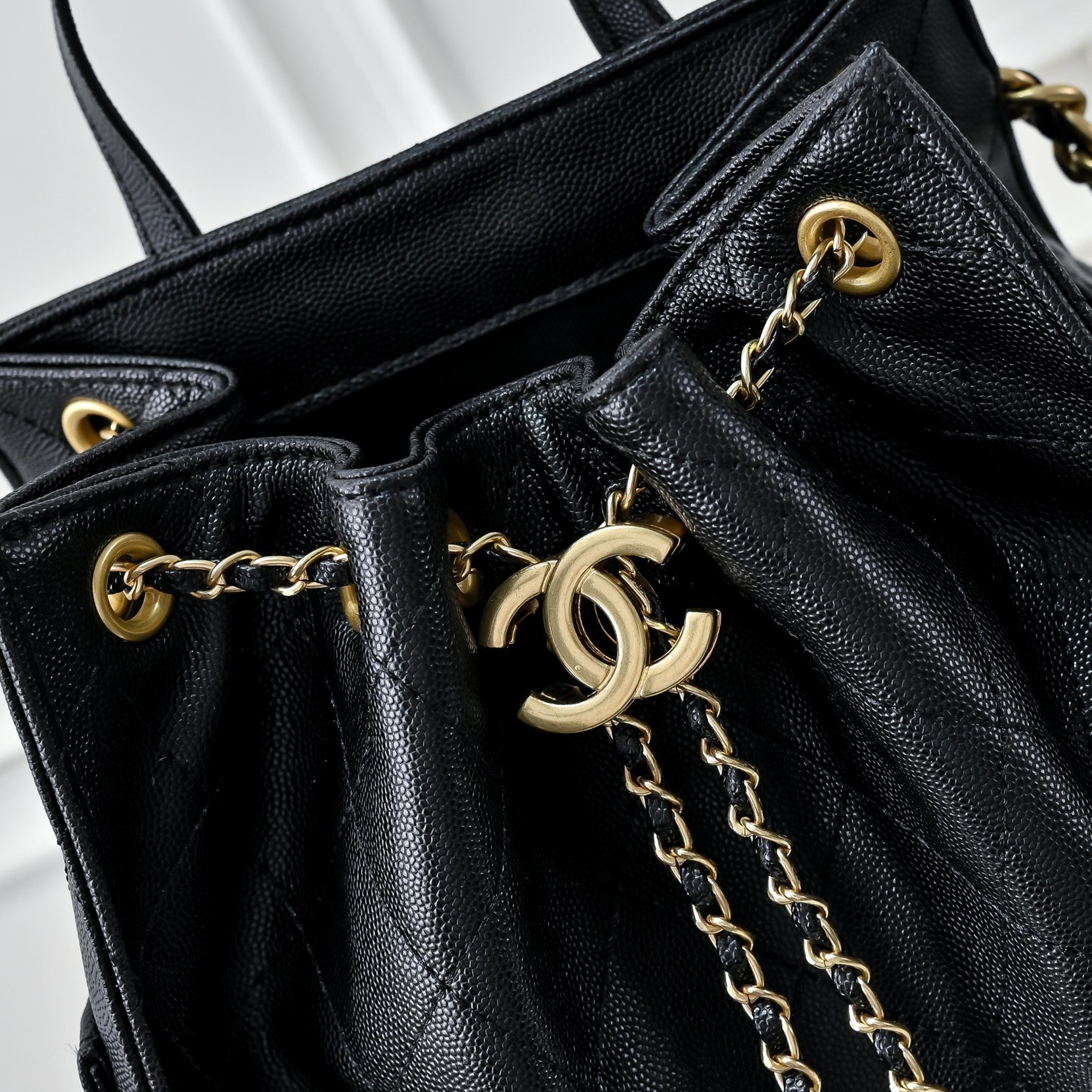 Chanel 25 Medium Size Backpack Grain Effect And Gold Metal Black 23Cm As5600 B20304 94305