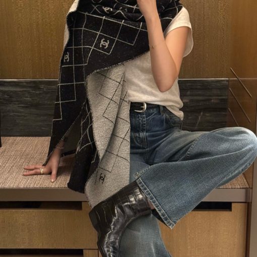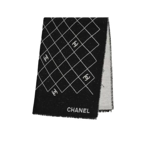 / CHANEL 25A QUILTED DOUBLE C SCARF BLACK 180CM