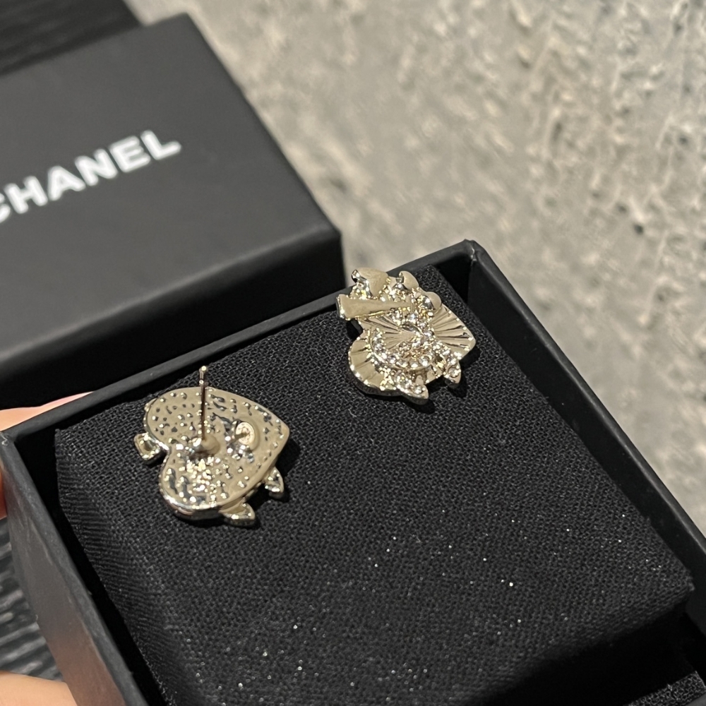 CHANEL CC CRYSTAL HEART EARRINGS GOLD ABG358 B21895 U3549