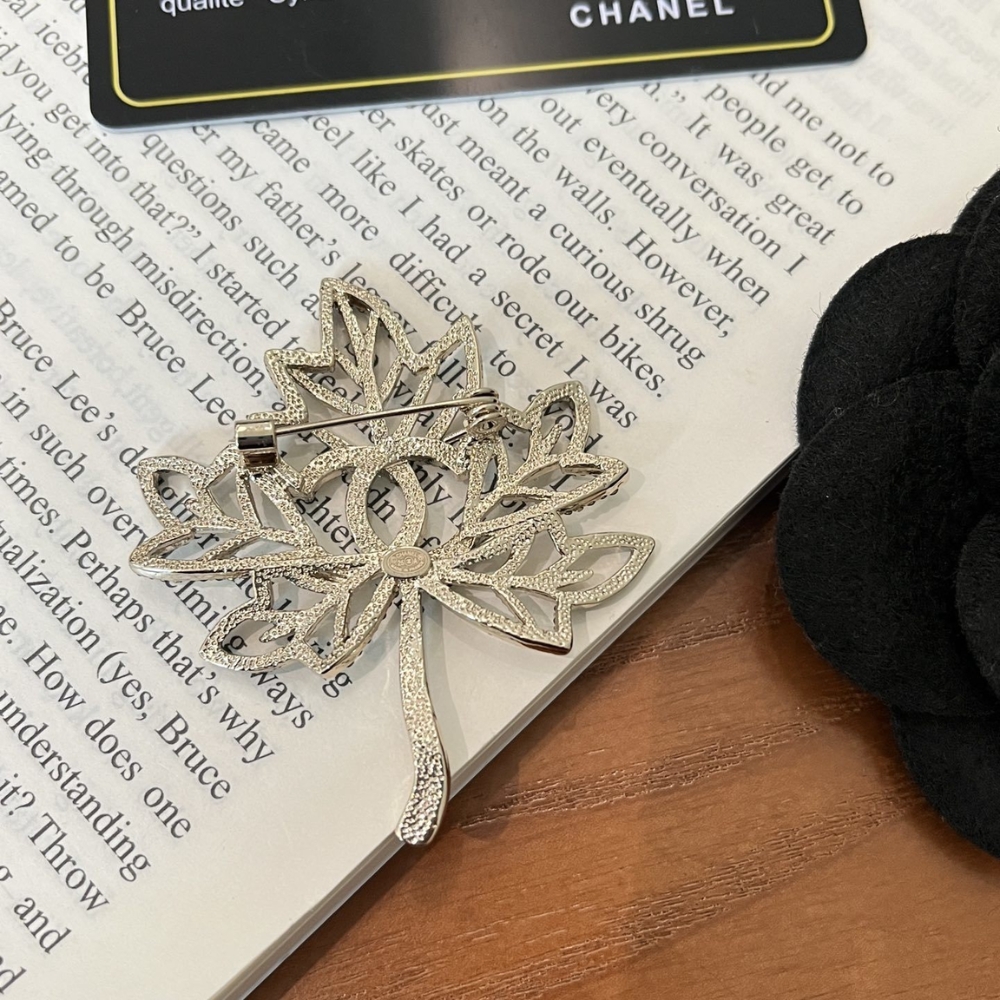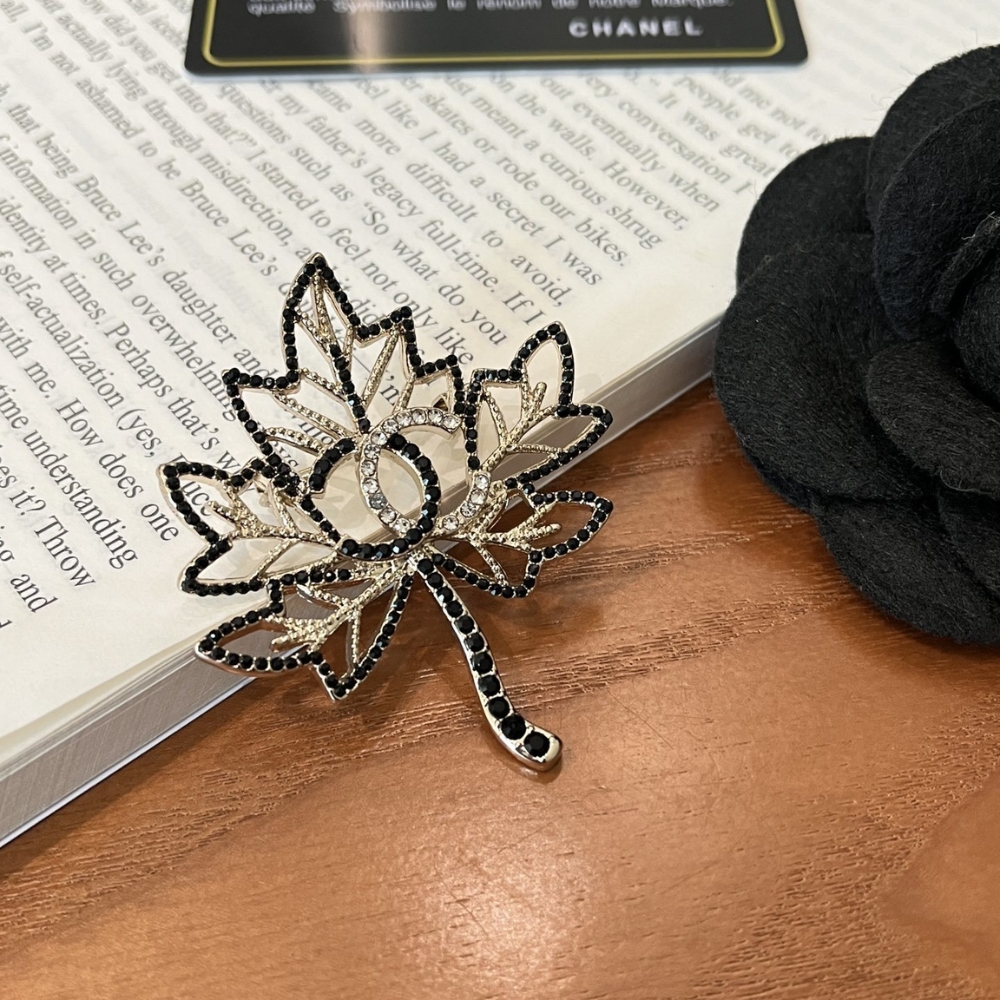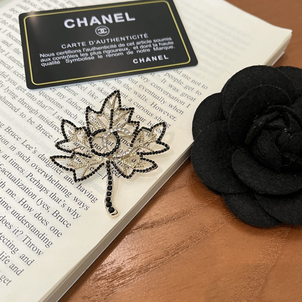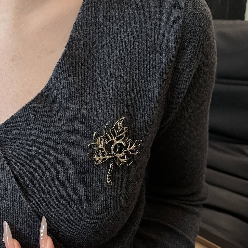 / CHANEL CC LEAF BROOCH BLACK GOLD