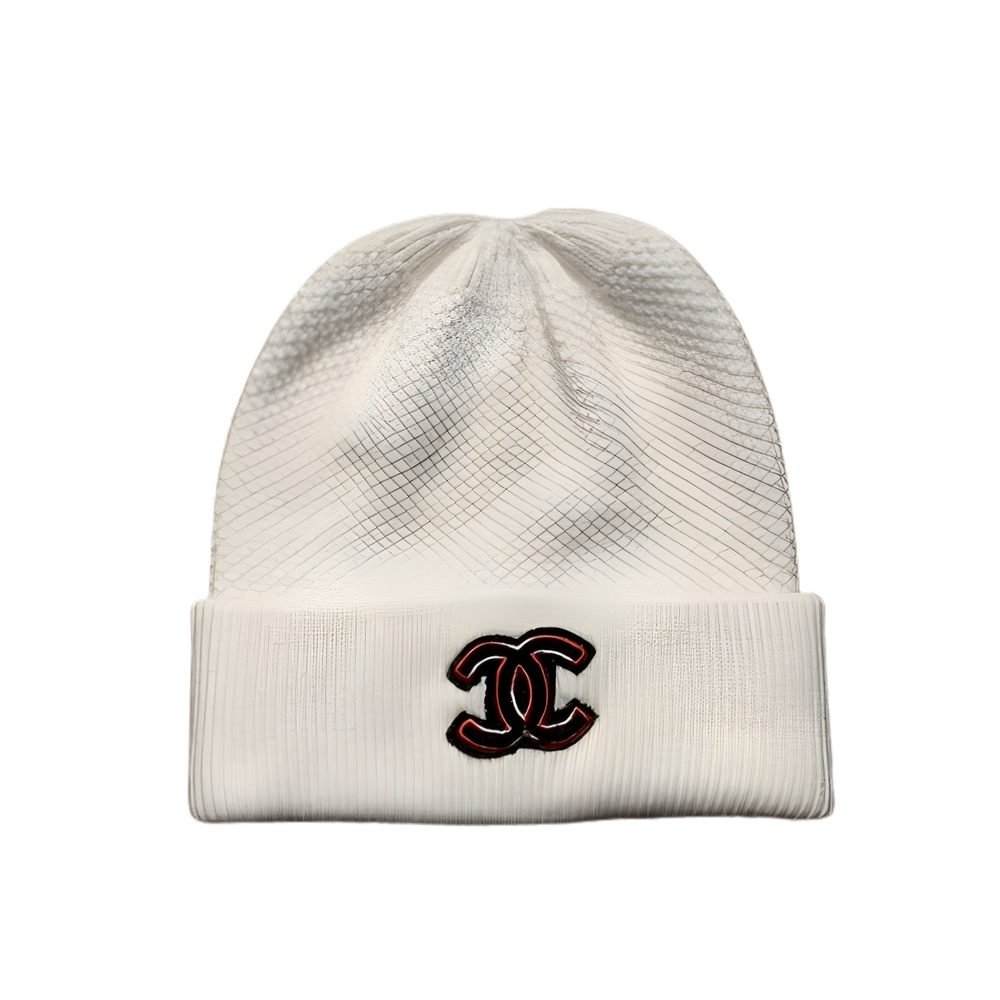 / CHANEL CC LOGO CASHMERE BEANIE WHITE