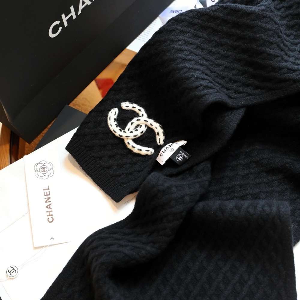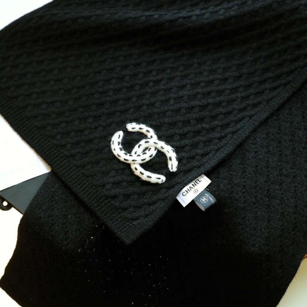 Chanel Cc Logo Patch Cashmere Scarf Black