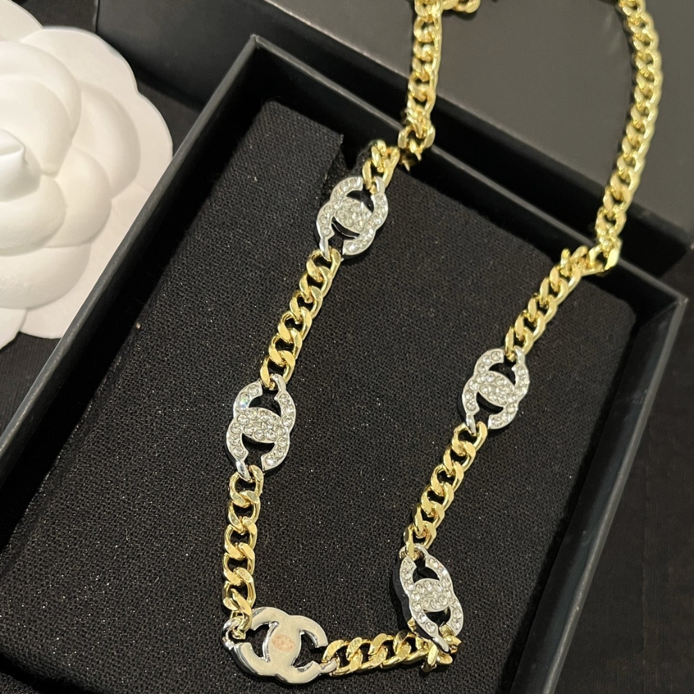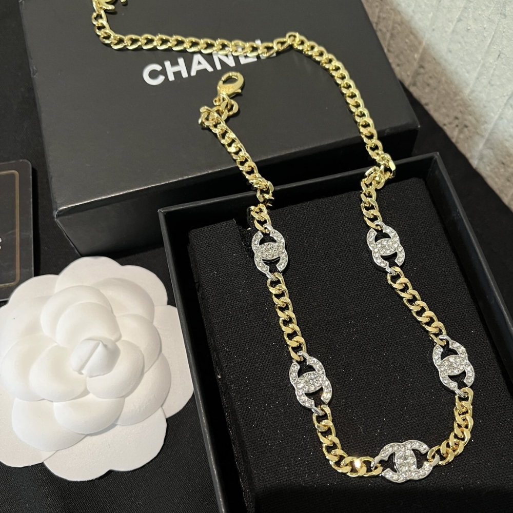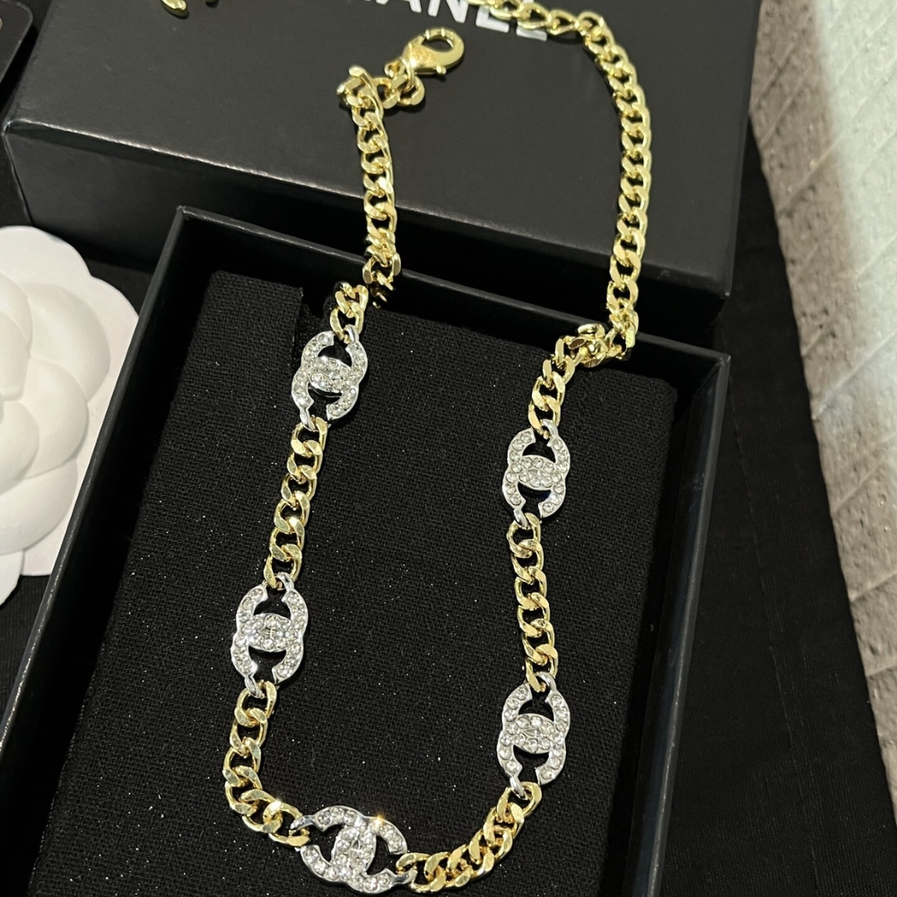 / Chanel Choker Metals And Stone Grains Gold Silver And Transparent