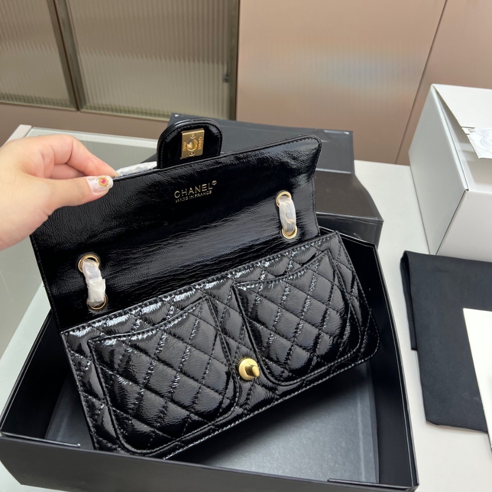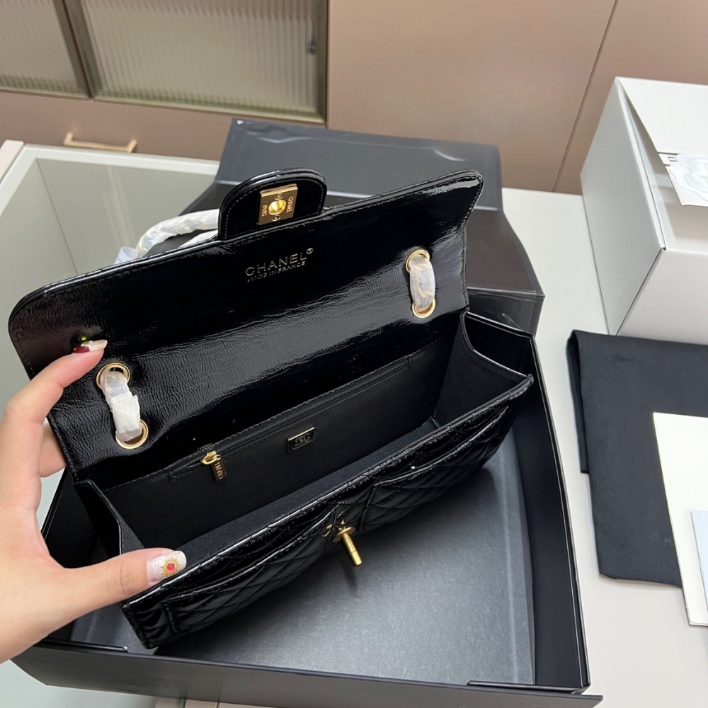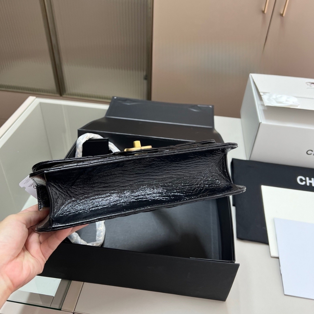 CHANEL FLAP BAG GLOSSY AND GOLD PLATED METAL BLACK 26CM AS5694 B21434 94305