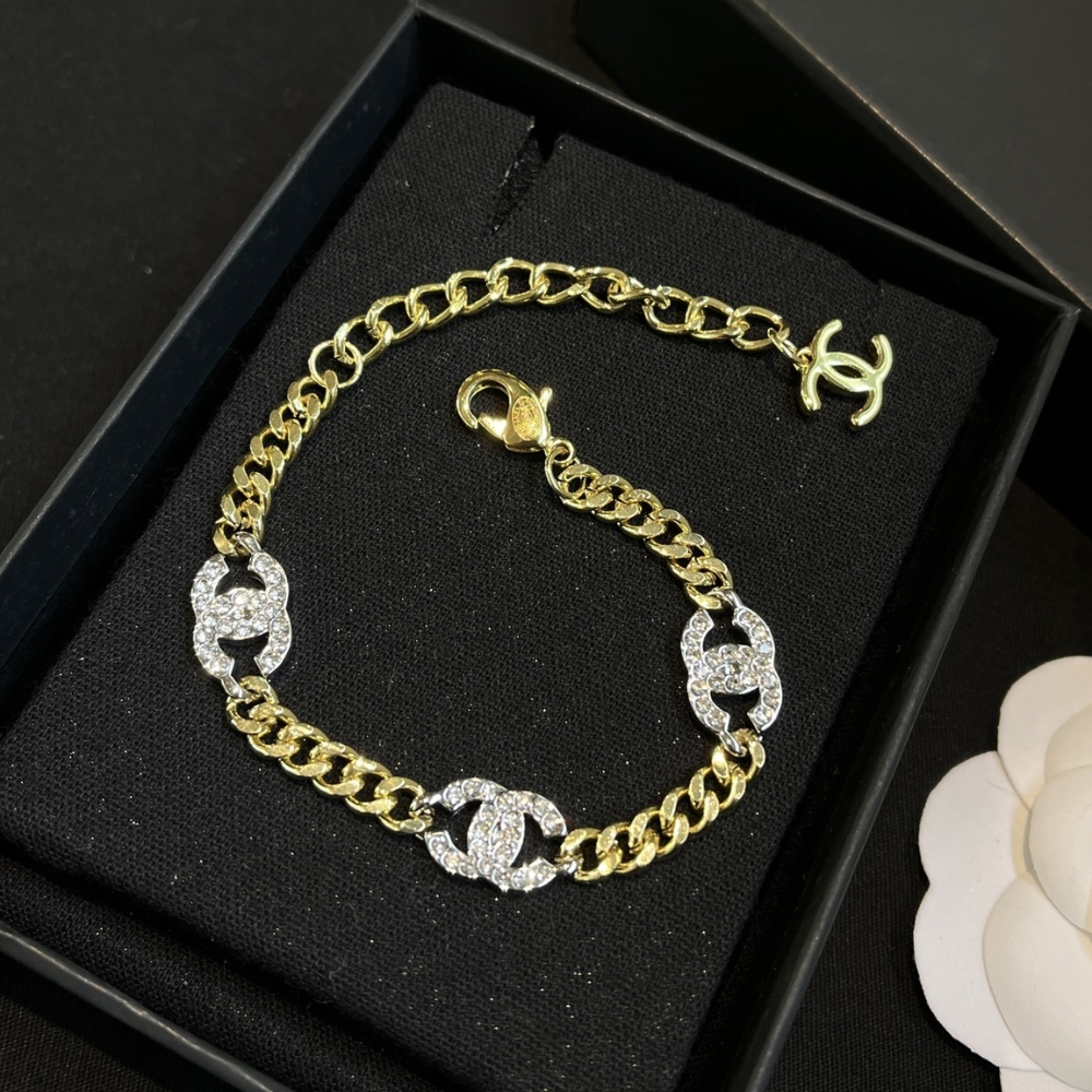 / Chanel Interlocking Bracelet Gold Silver And Transparent Ab6442 B06011 Nc835