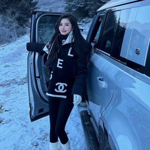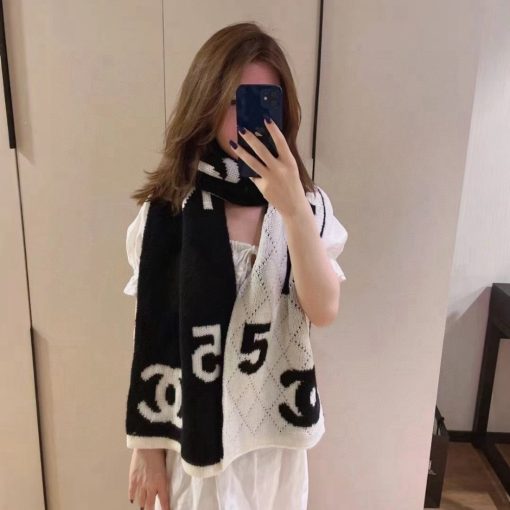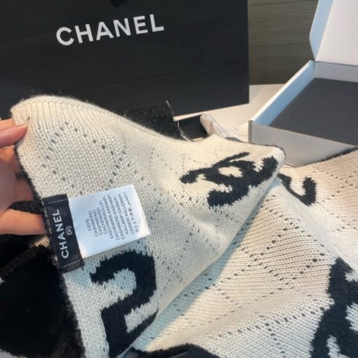 CHANEL LOGO CASHMERE MUFFLER BLACK AND WHITE 170CM
