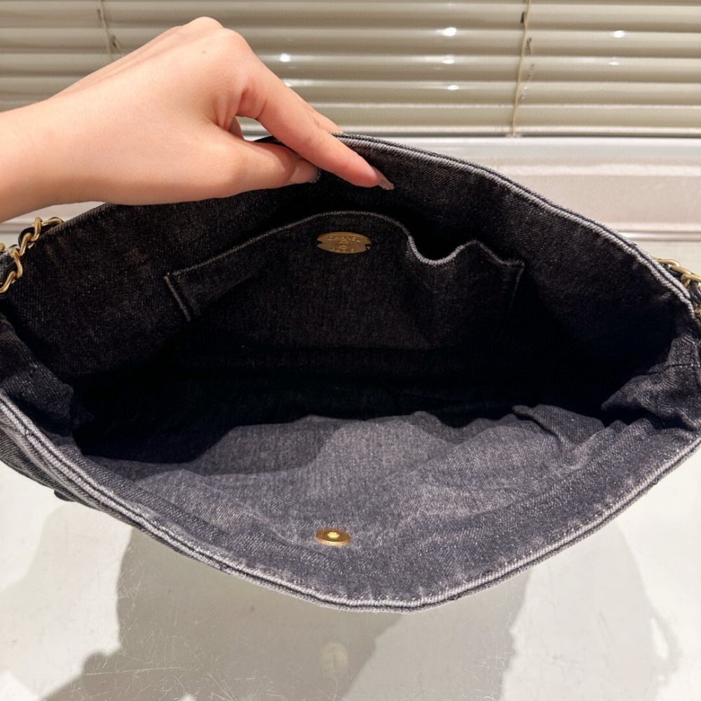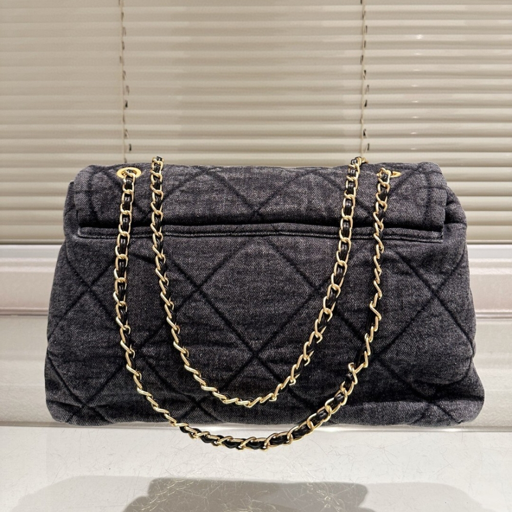 / Chanel Maxi Flapbag Washed Denim And Gold Tone Metal Black 30Cm