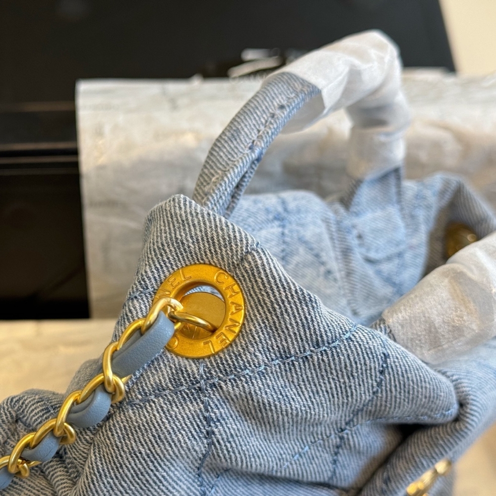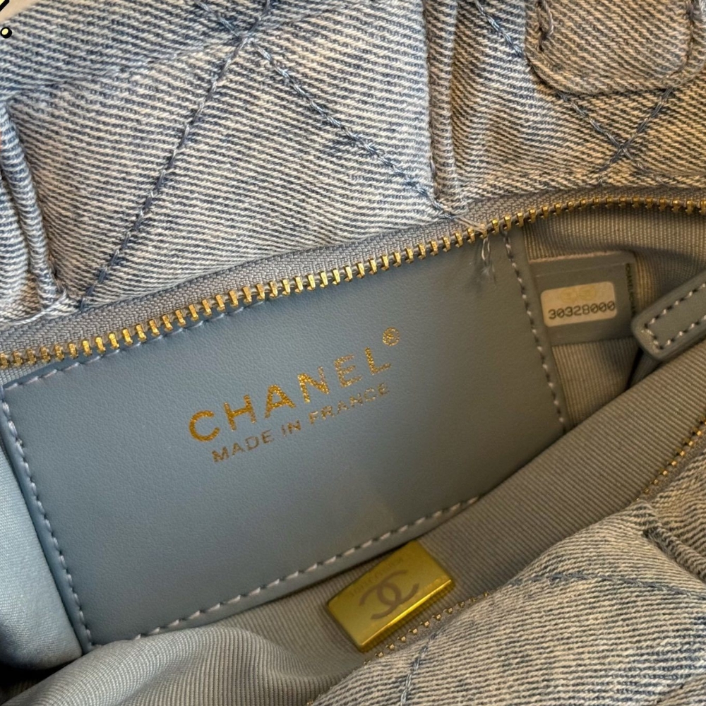CHANEL MINI BOW BAG WASHED DENIM AND GOLD TONE METAL BLUE 21CM