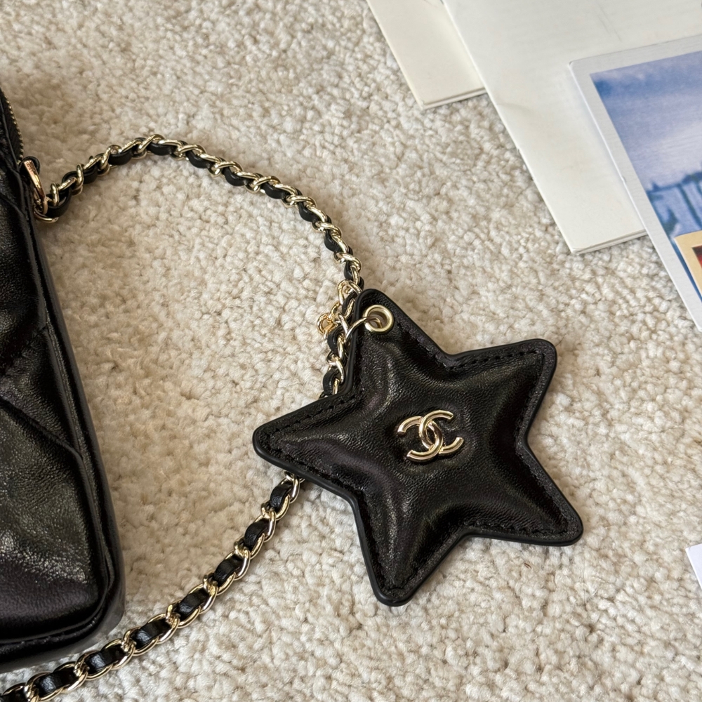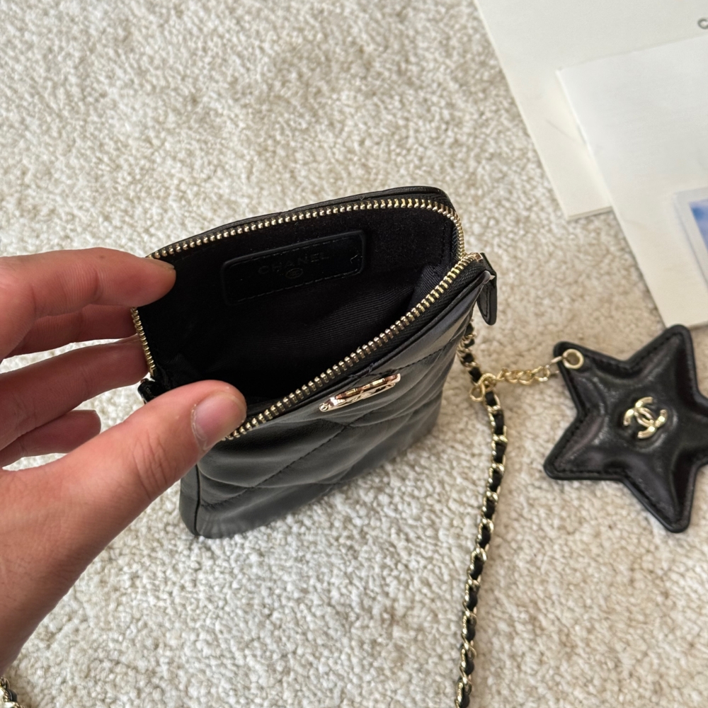 CHANEL PHONE HOLDER WITH CHAIN SHINY CRUMPLED AND GOLD TONE METAL BLACK 18CM AP4777 B21296 94305 quantity