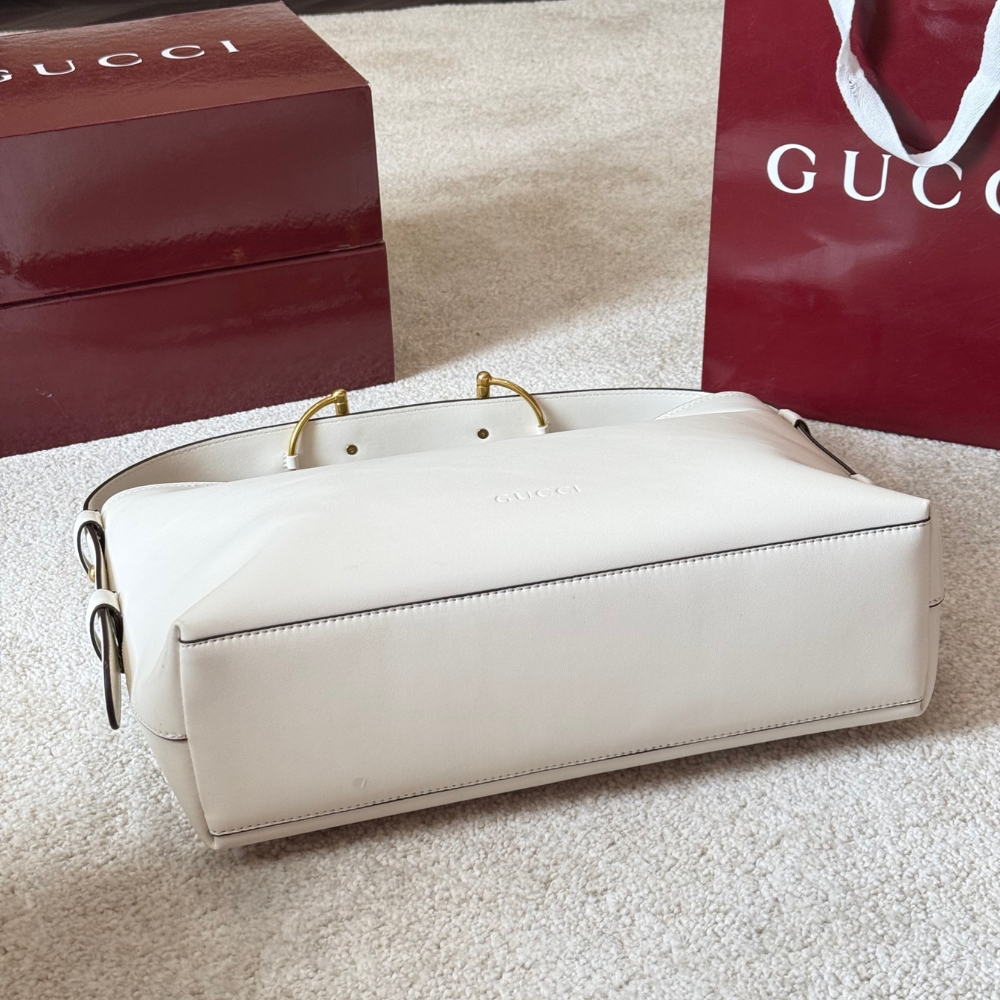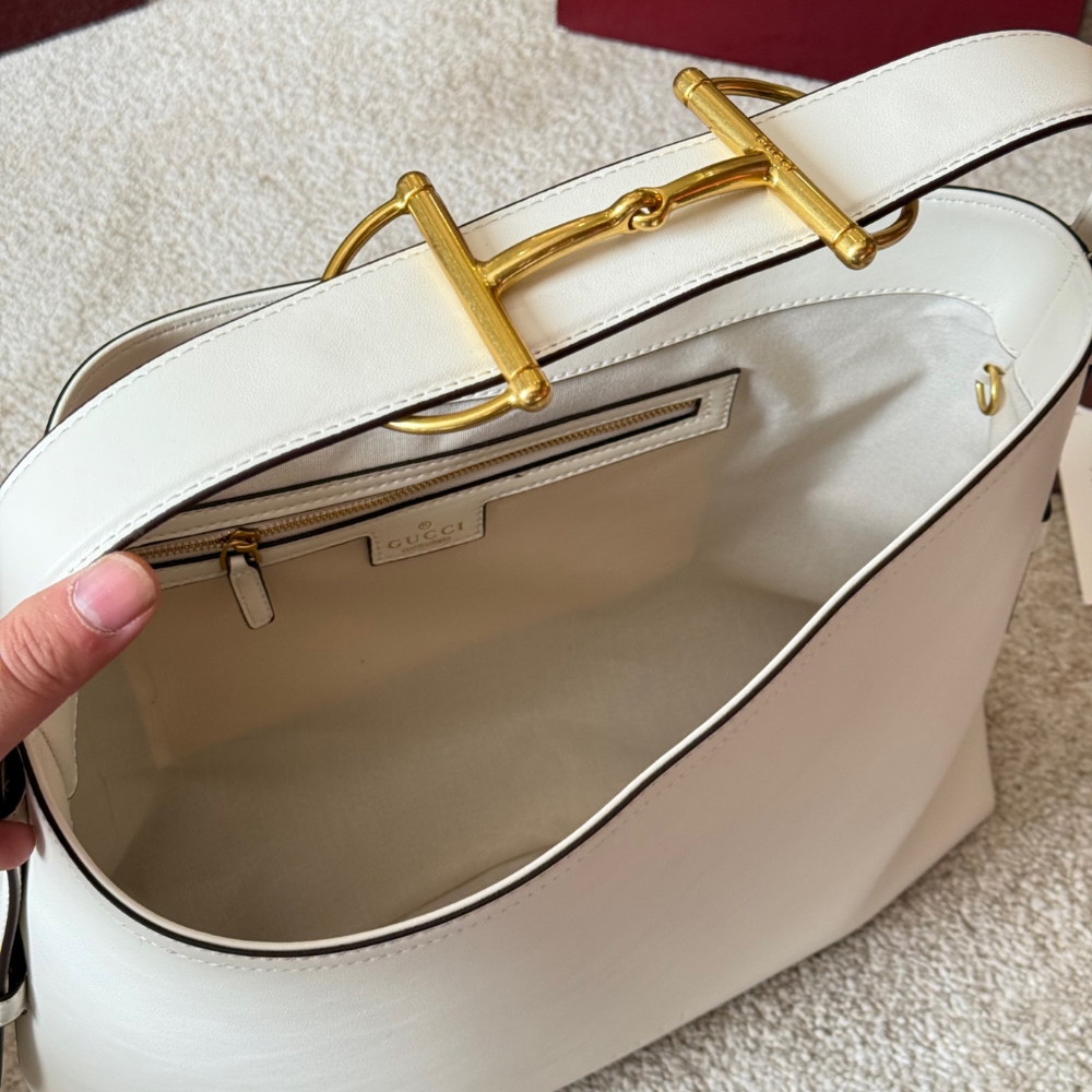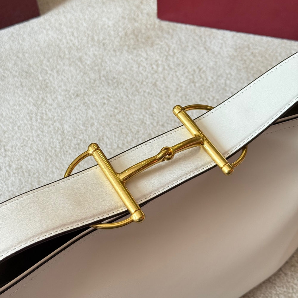 - Horsebit detail on the shoulder strap