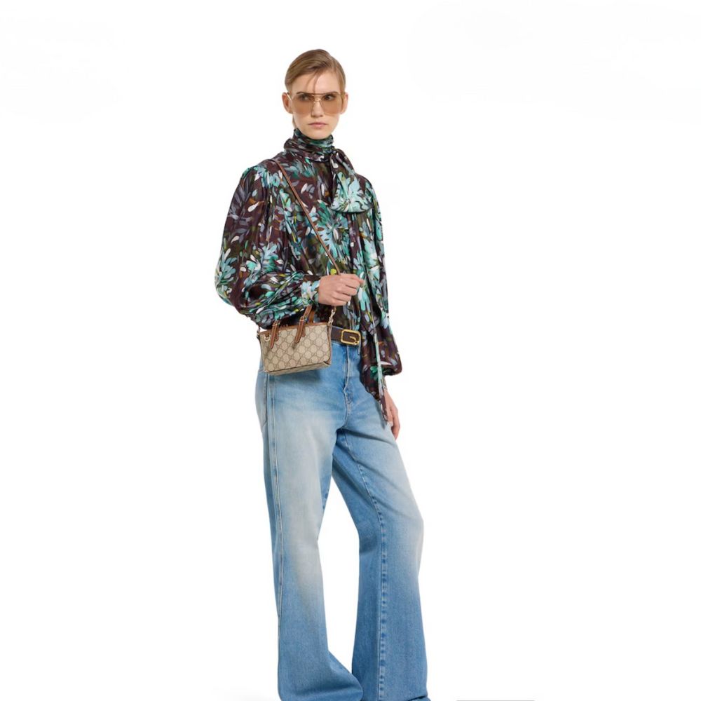 The GG Emblem collection introduces contemporary silhouettes in the women’s small leather goods, ideal for carrying daily essentials. This beige and brown mini bag is crafted from the GG Monogram coated fabric. Featuring a brown leather trim, the design comes with a detachable and adjustable leather shoulder strap.