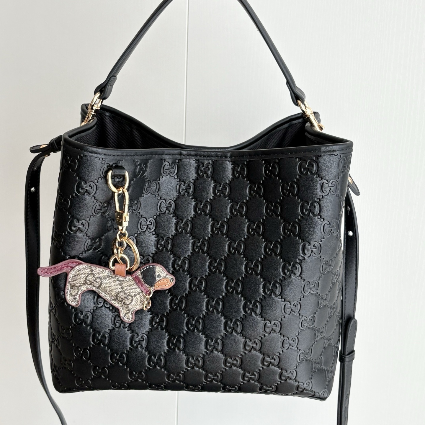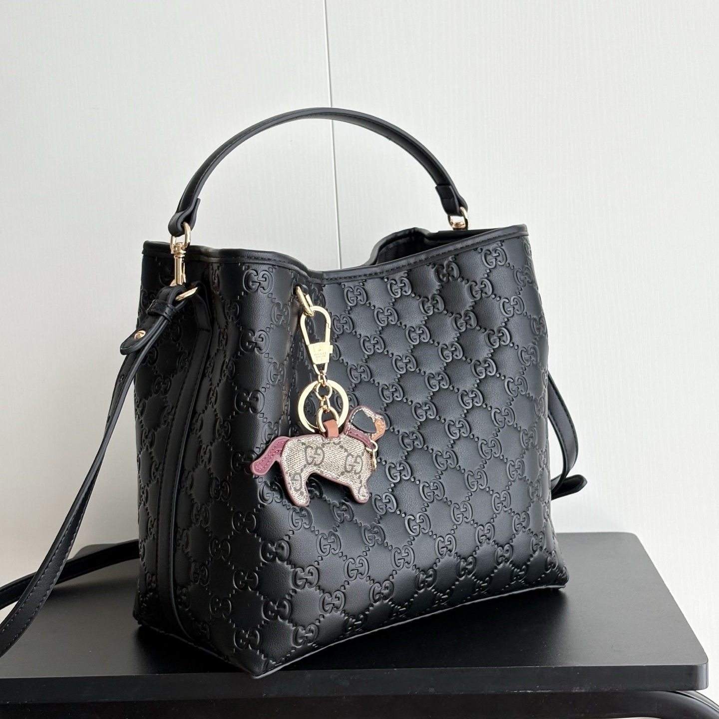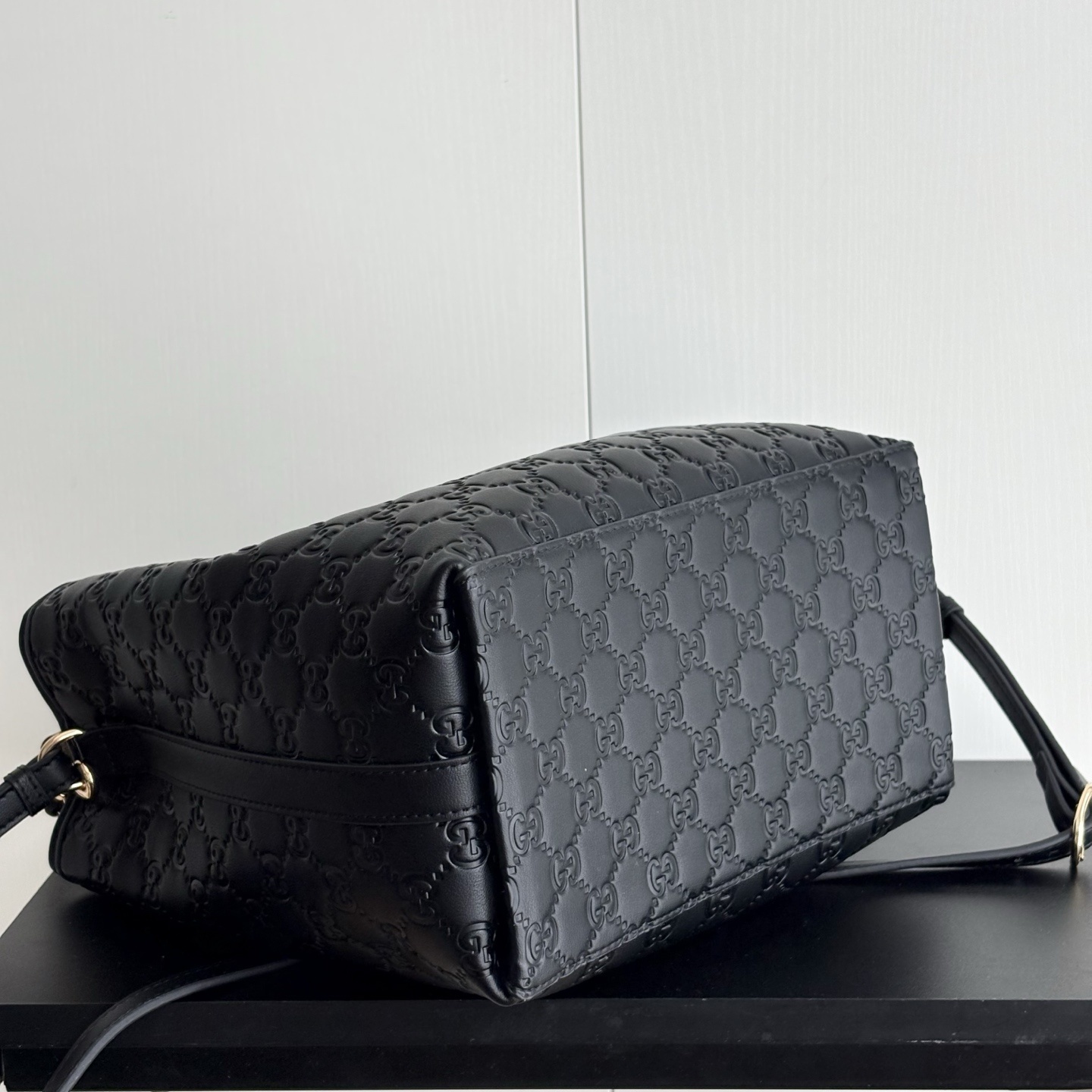 - Black embossed GG leather.