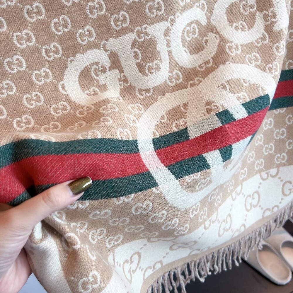 Gucci Gg Jacquard Knitted Scarf Beige 180Cm quantity