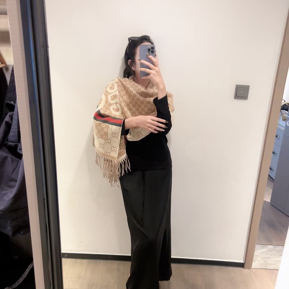 / Gucci Gg Jacquard Knitted Scarf Beige 180Cm
