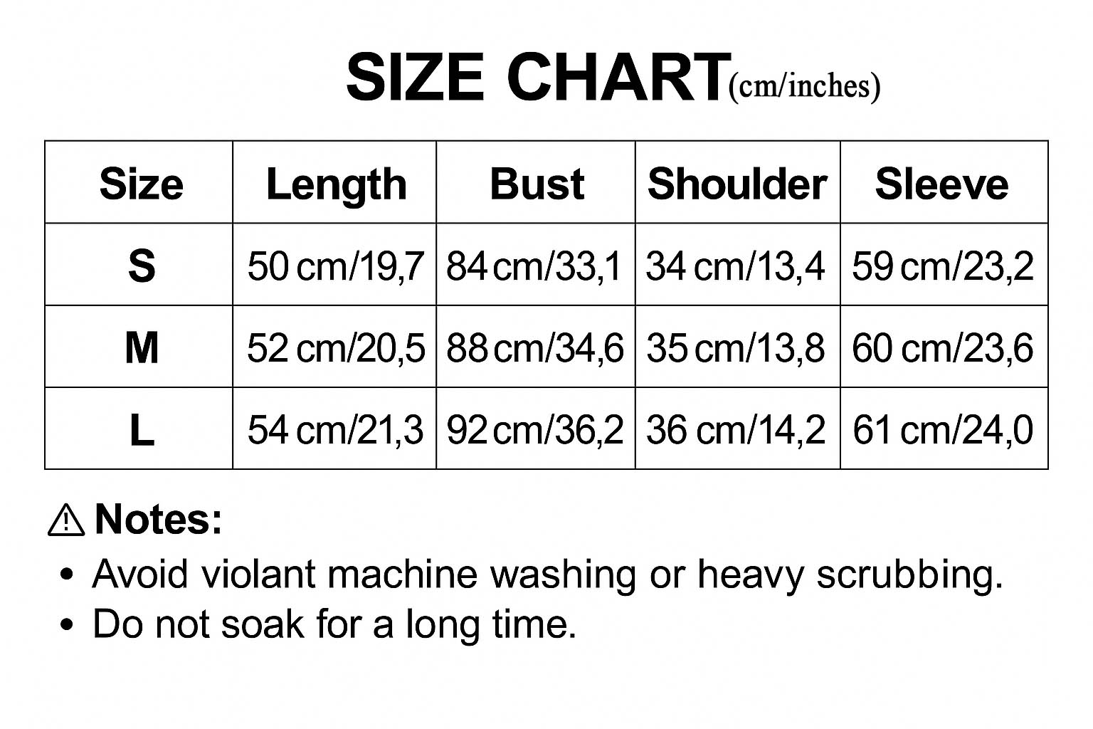 Size S Height 160 165cm Weight 50 55kg
