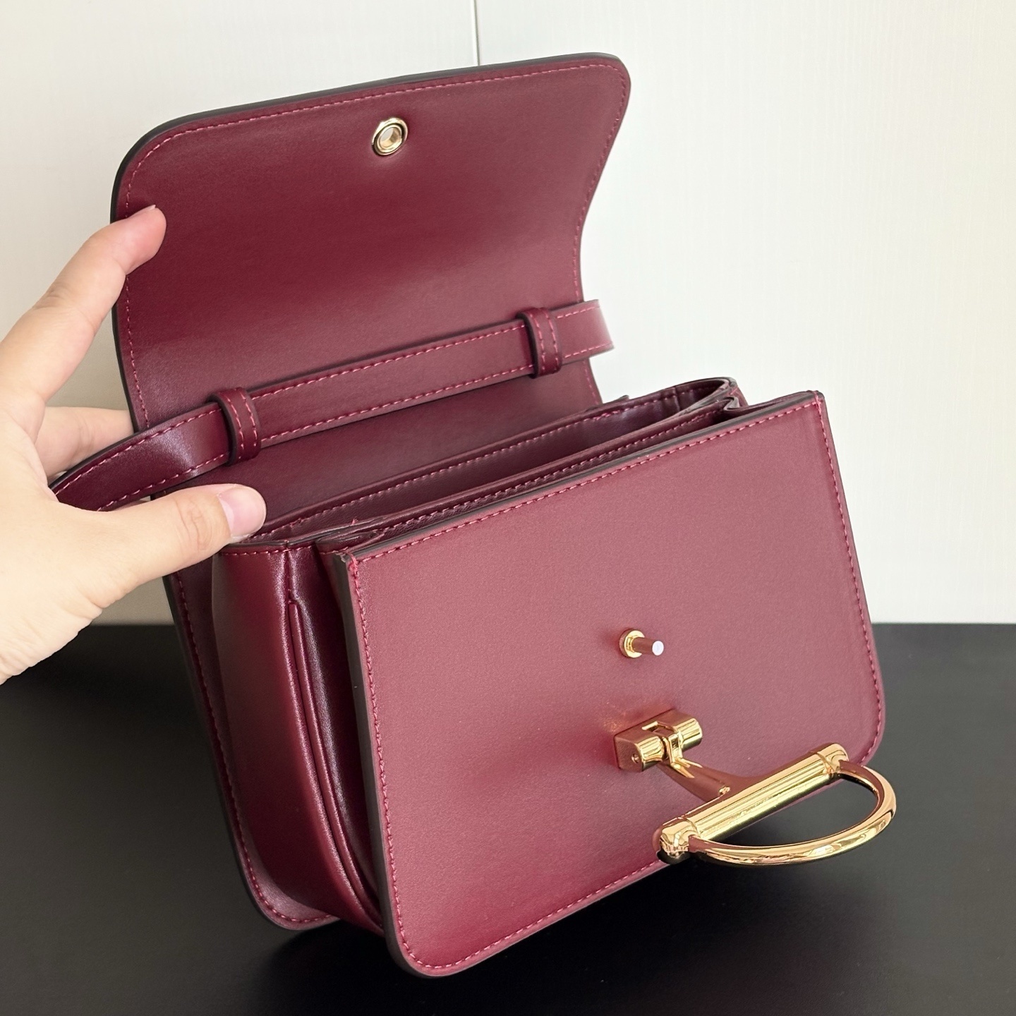 • Gold-toned hardware