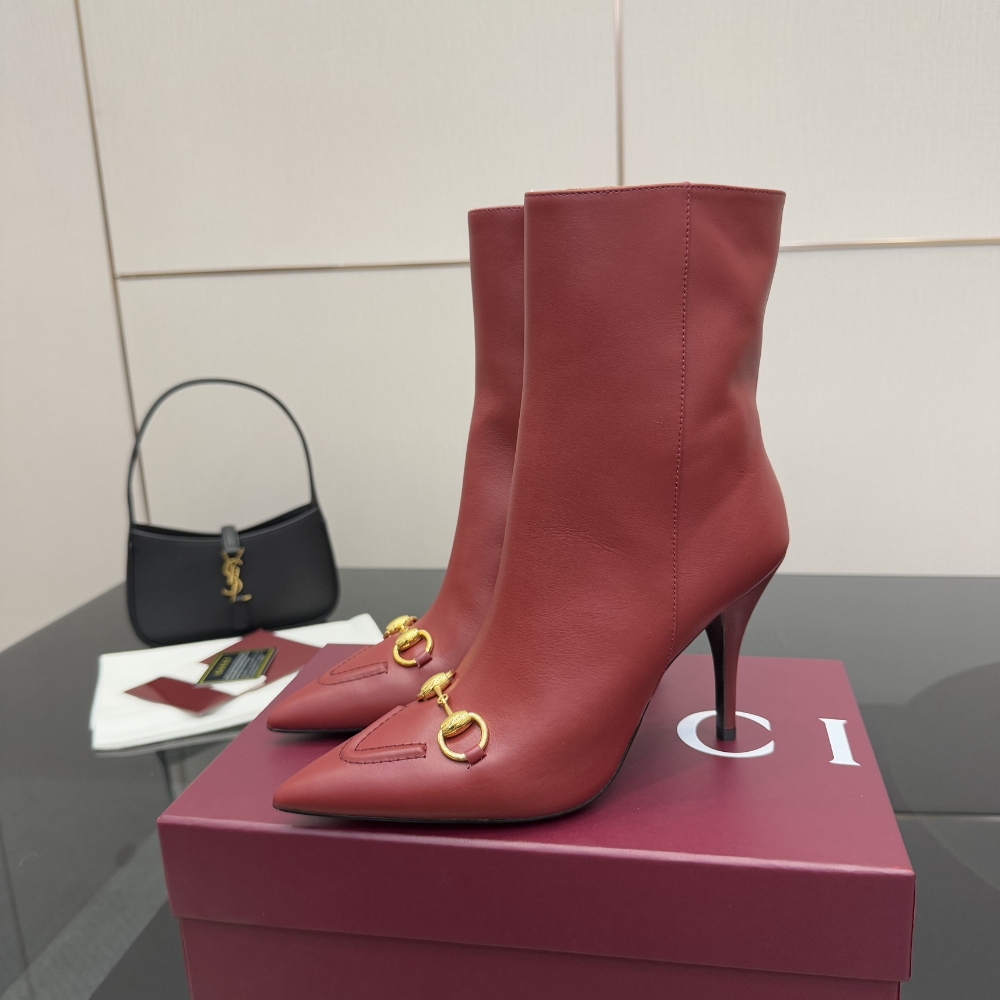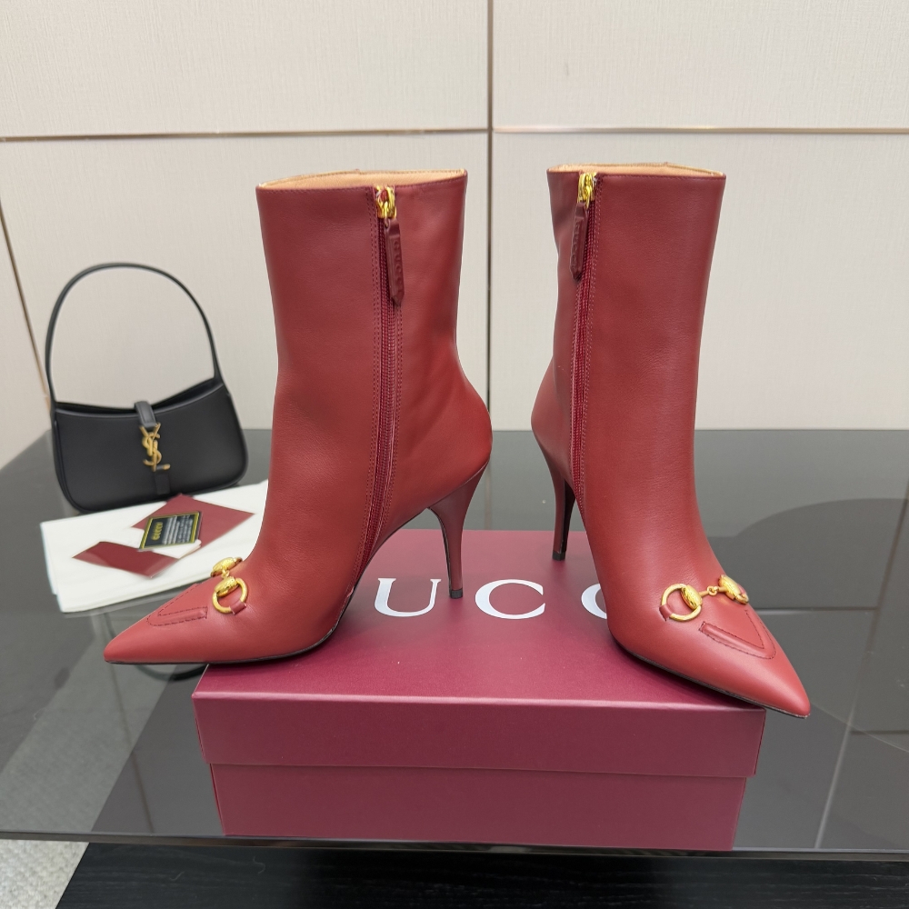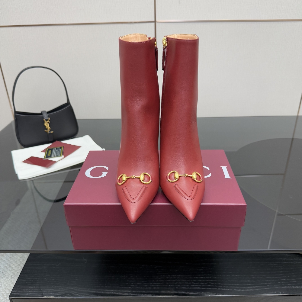 GUCCI WOMEN ANKLE BOOT WITH HORSEBIT ROSSO ANCORA RED 835741 BKO00 6207