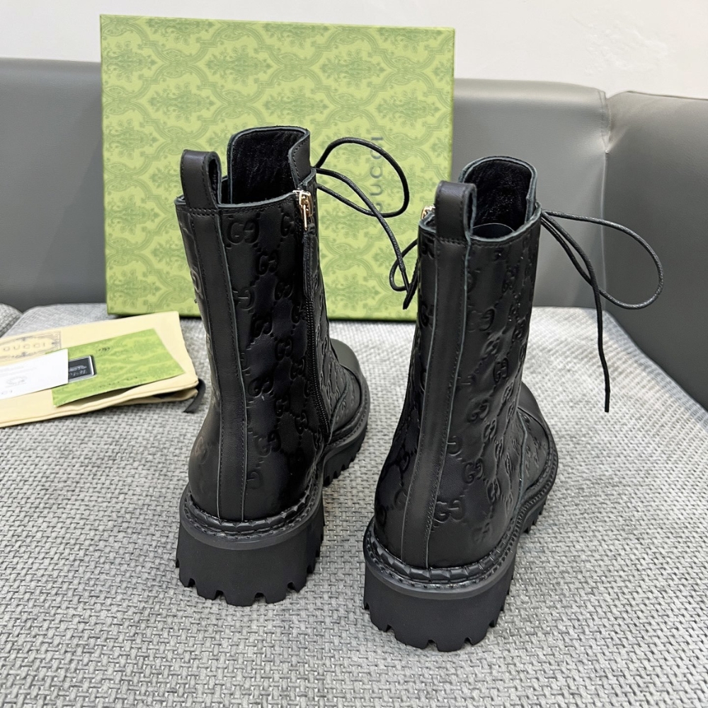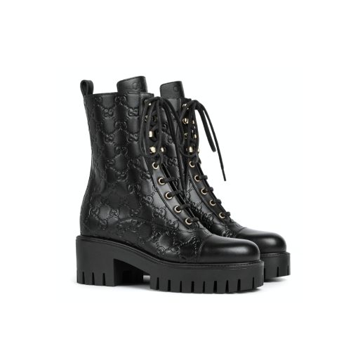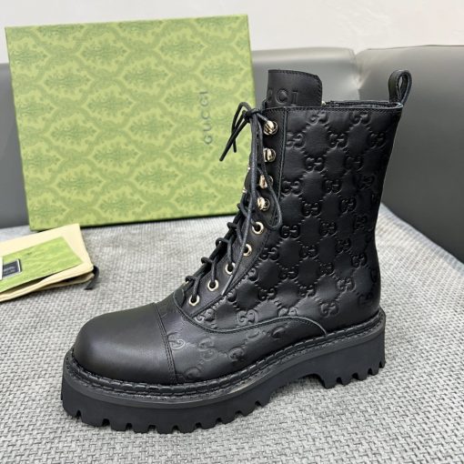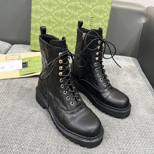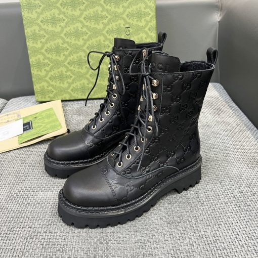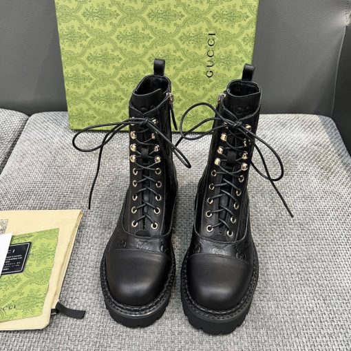 GUCCI WOMEN LACE UP ANKLE BOOT WITH GG BLACK LEATHER 840739 AAE5Q 1000 quantity