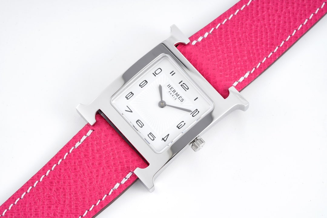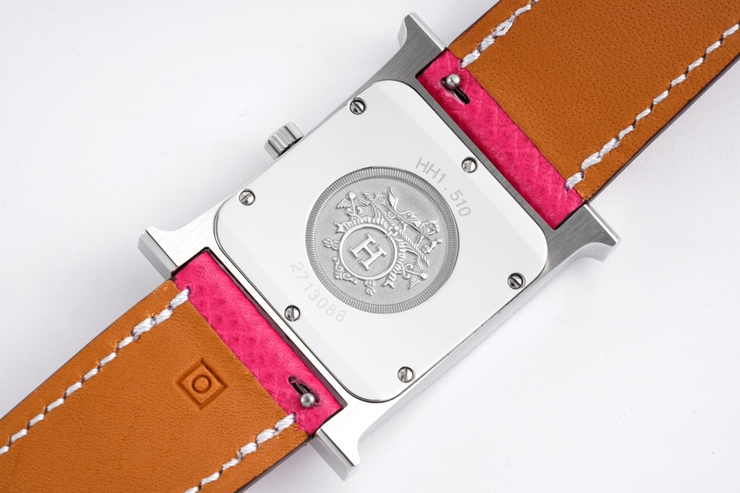 Hermes H Hour Watch Pink Strap 21Mm 038276Ww00
