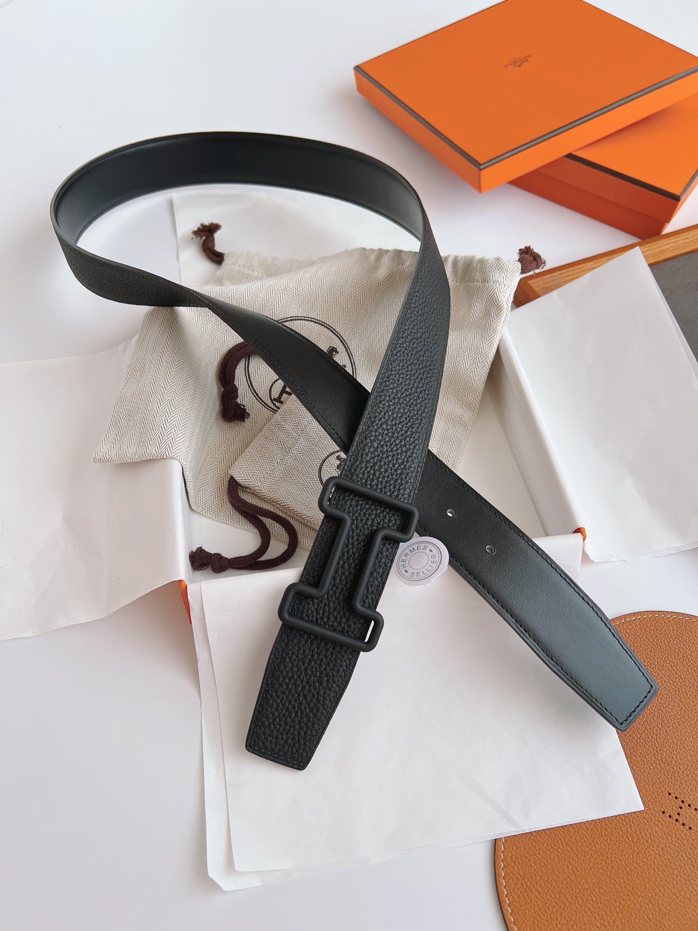 / HERMES LEATHER BELT WITH H BUCKLE BLACK 38MM