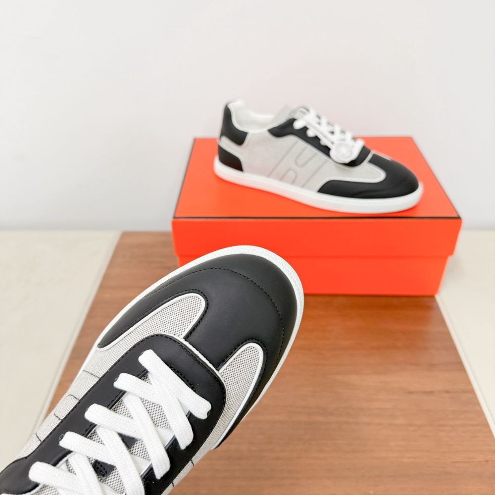 - Sneaker in sport goatskin with perforated “H en Biais” motif.