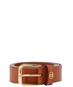 GUCCI BROWN BELT WITH SQUARE BUCKLE AND INTERLOCKING G GOLD MEATL 35MM