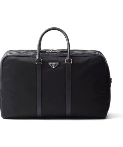 PRADA RE NYLON AND SAFFIANO LEATHER DUFFEL BAG BLACK 50CM 2VC042 2DMH F0002 V OOO