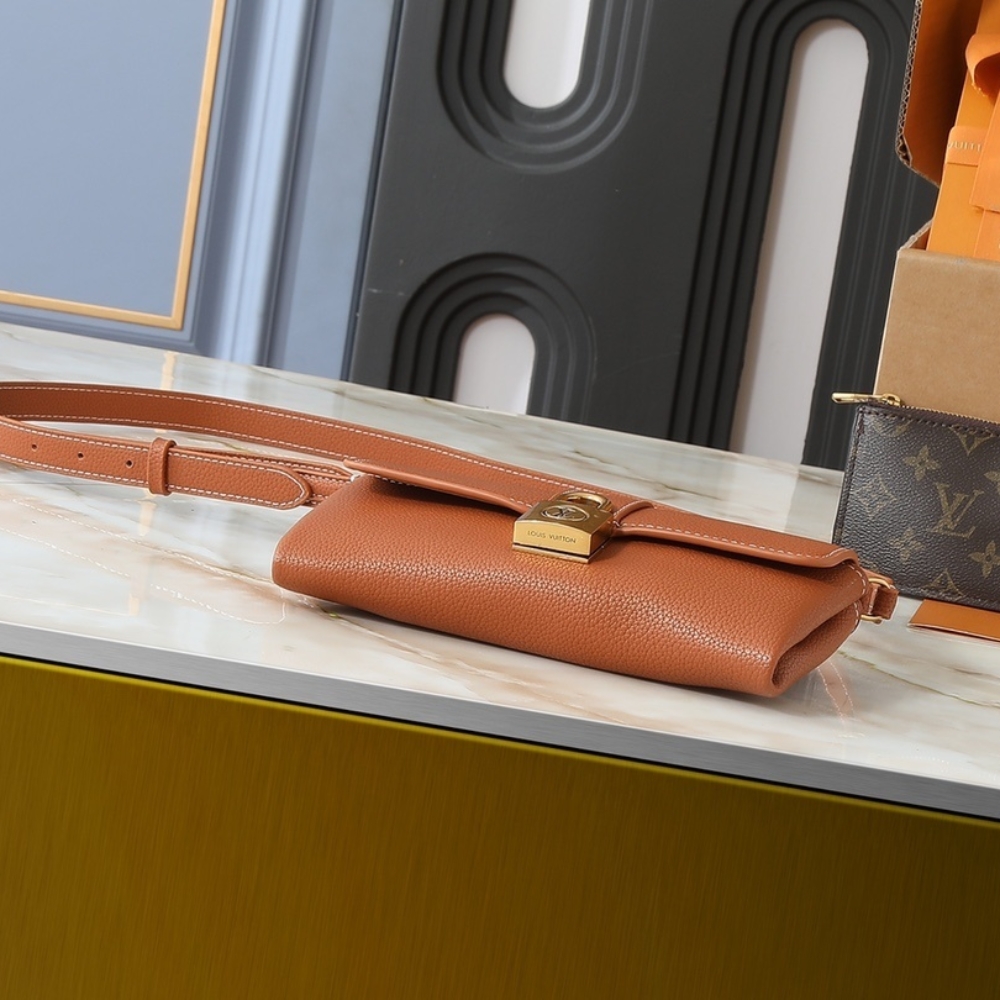 As a new design in the Low Key collection, this bag exudes elegance and sophistication with its supple leather and a detachable zippered compartment in Monogram Canvas, showcasing the Maison’s craftsmanship. The product is further embellished with gold-tone metal details, including a lock engraved with the LV logo for secure storage.