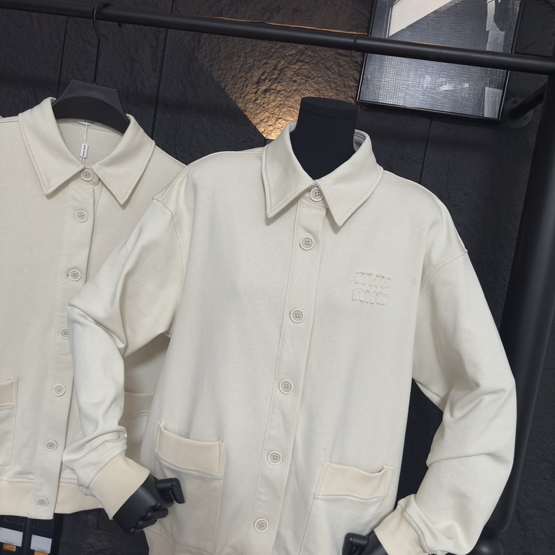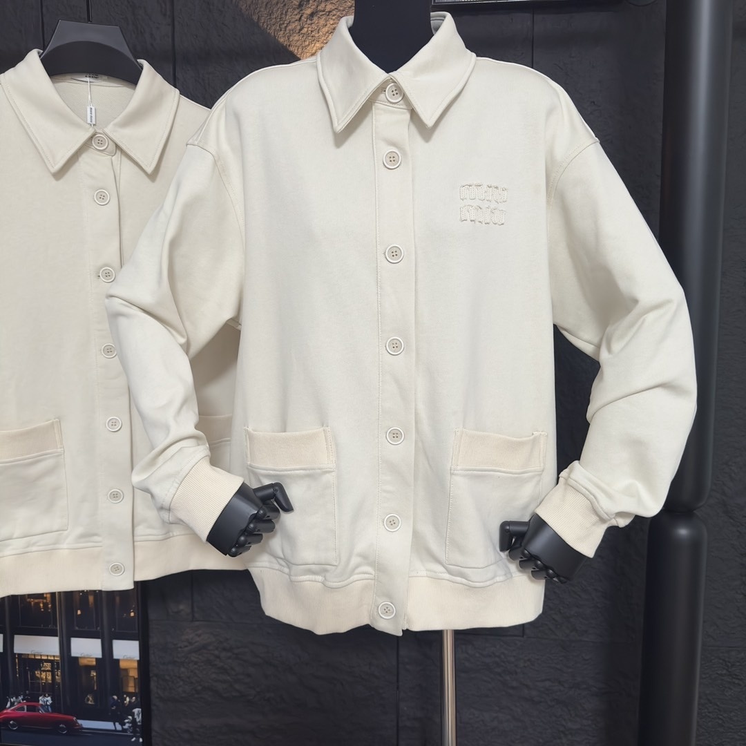 MIU MIU GARMENT DYED COTTON FLEECE BLOUSON JACKET CREAM MJL009 14RU F0K74 S OOO quantity