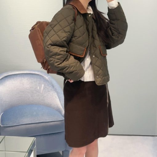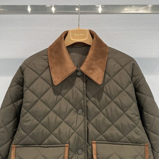 MIU MIU QUILTED TECHNICAL PONGE BLOUSON JACKET DARK BROWN ML1310 17OO F0161 S OOO