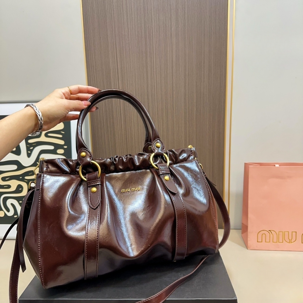 MIU MIU SIDE RIBBON 2WAY HANDBAG BURGUNDY 33CM