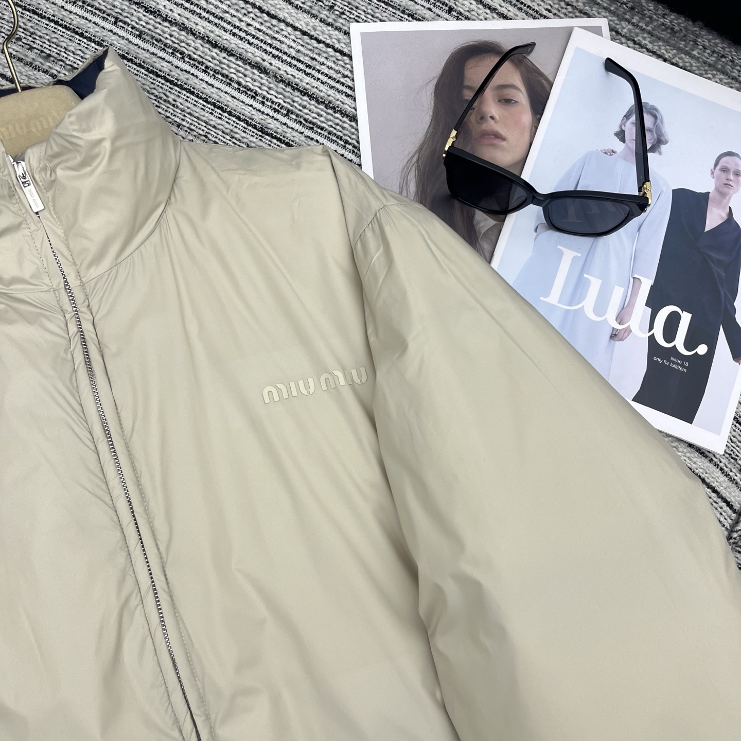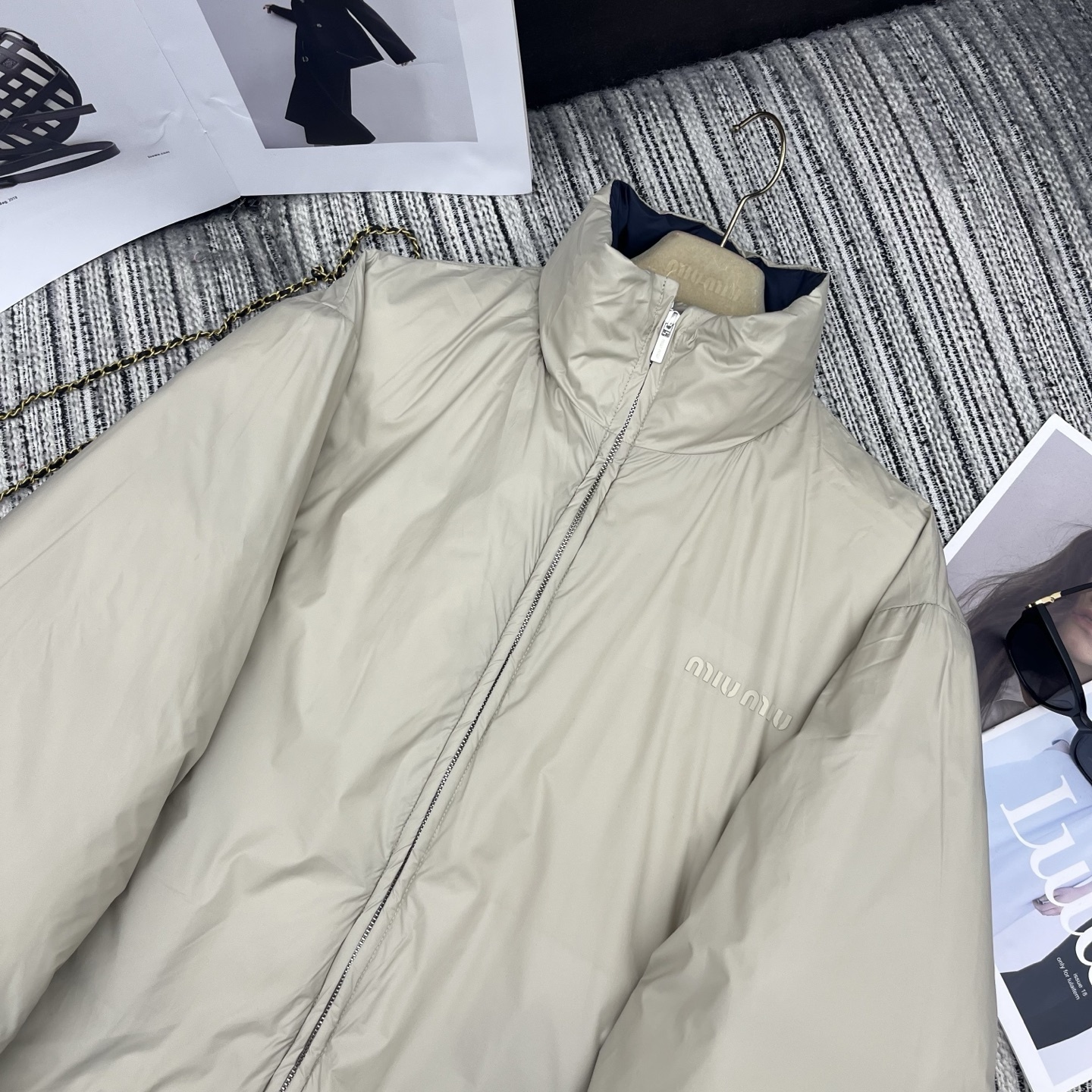 MIUMIU HIGH NECK REVERSIBLE PUFFER JACKET BEIGE quantity