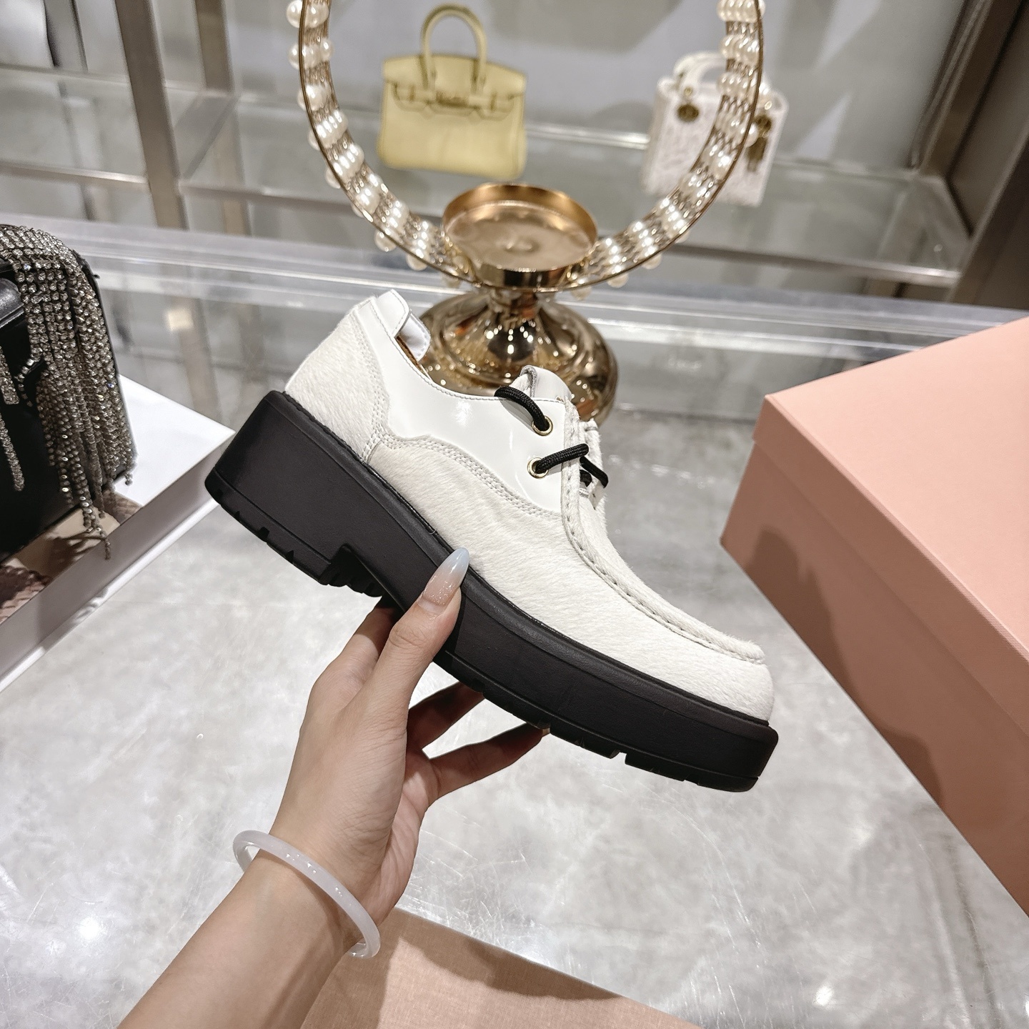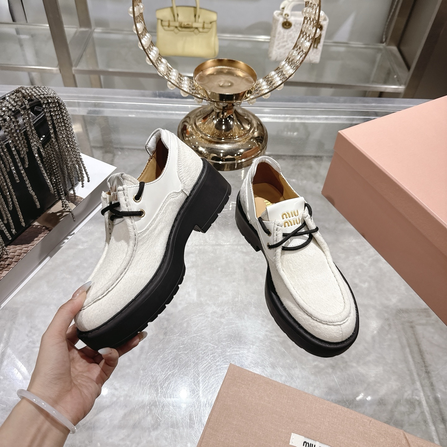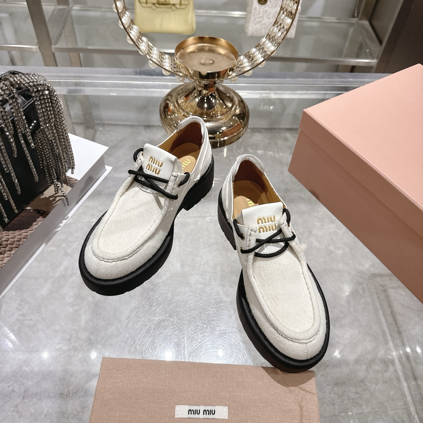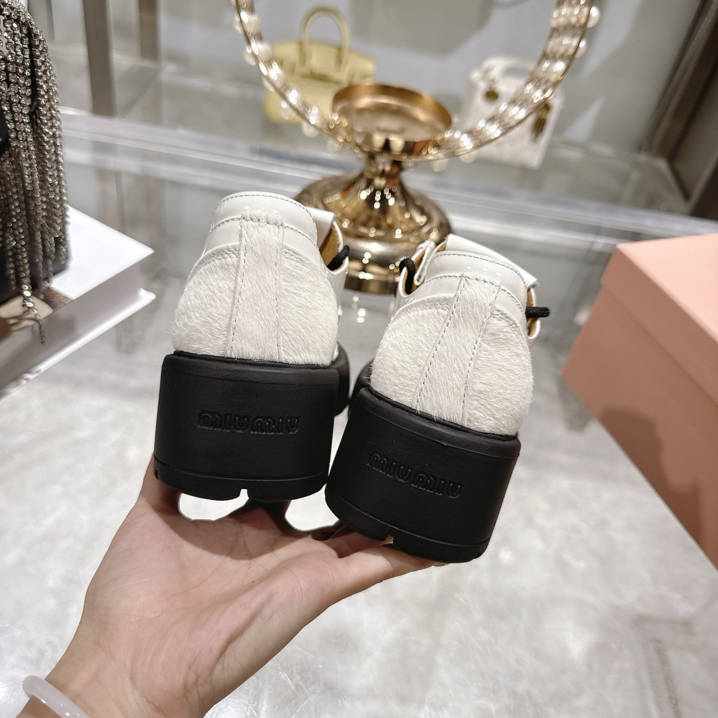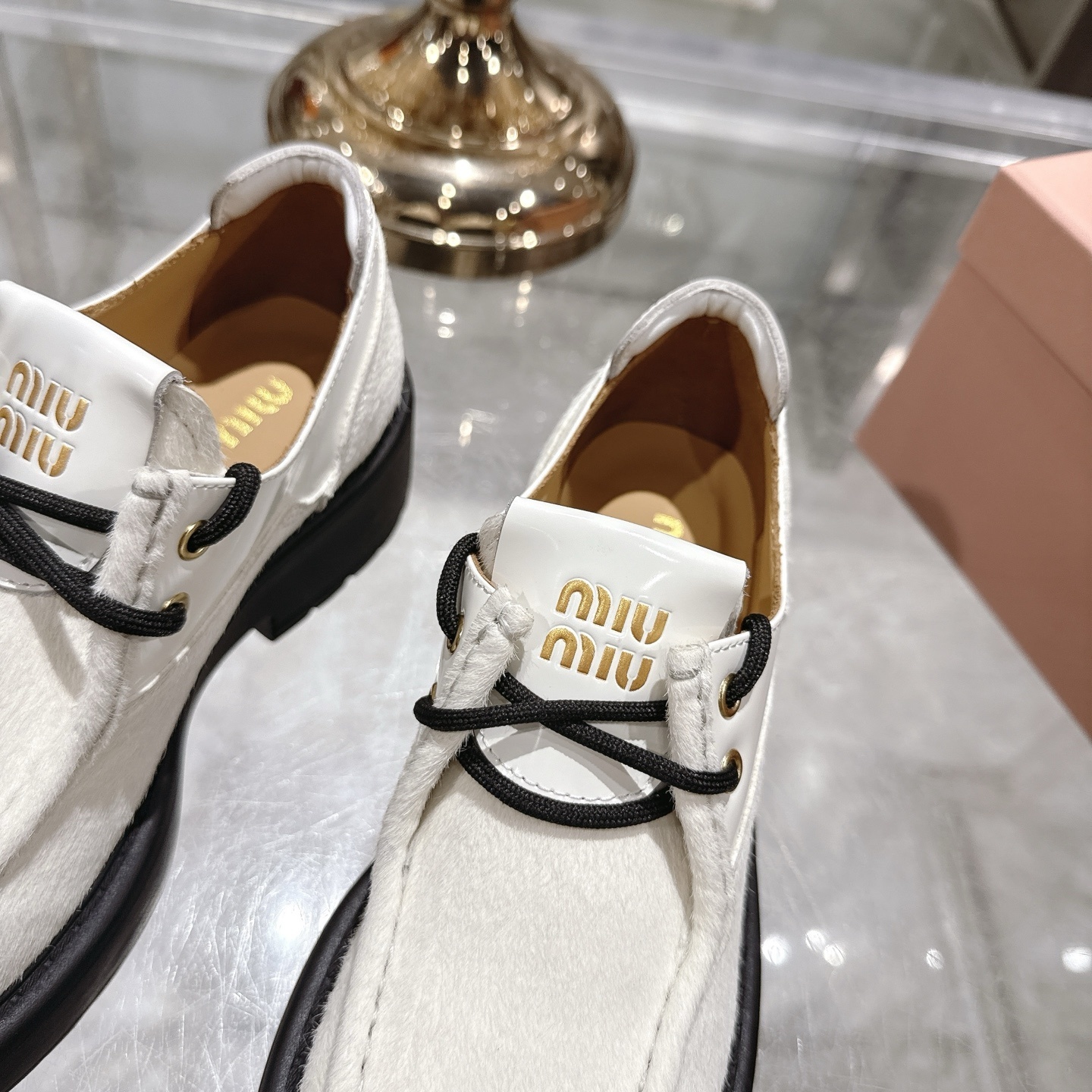 / MIUMIU LEATHER AND CALF HAIR LEATHER LACED SHOES IVORY 5E964D 2HIO F0304 F D055