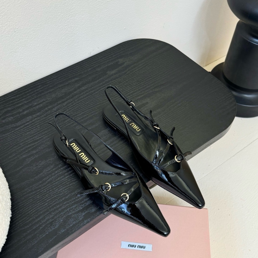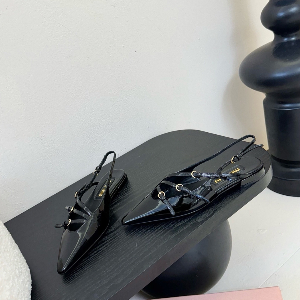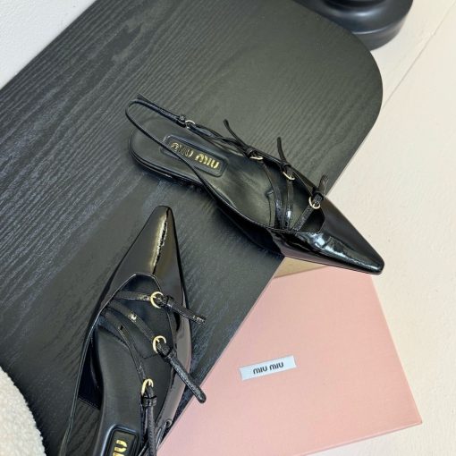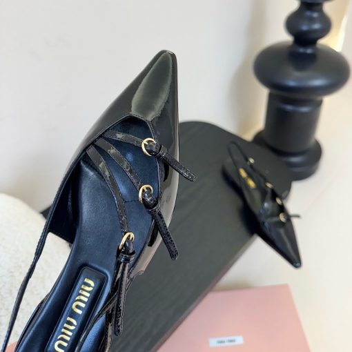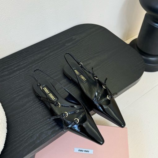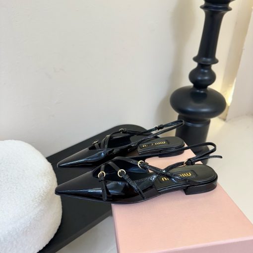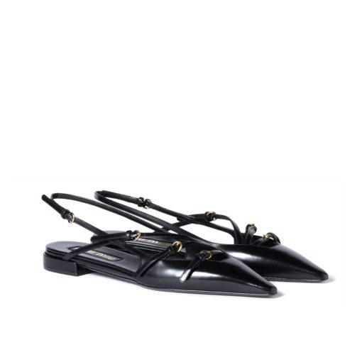 / MIUMIU LEATHER SLINGBACK BALLERINAS WITH BUCKLES BLACK 5F476E 055 F0002 F 010