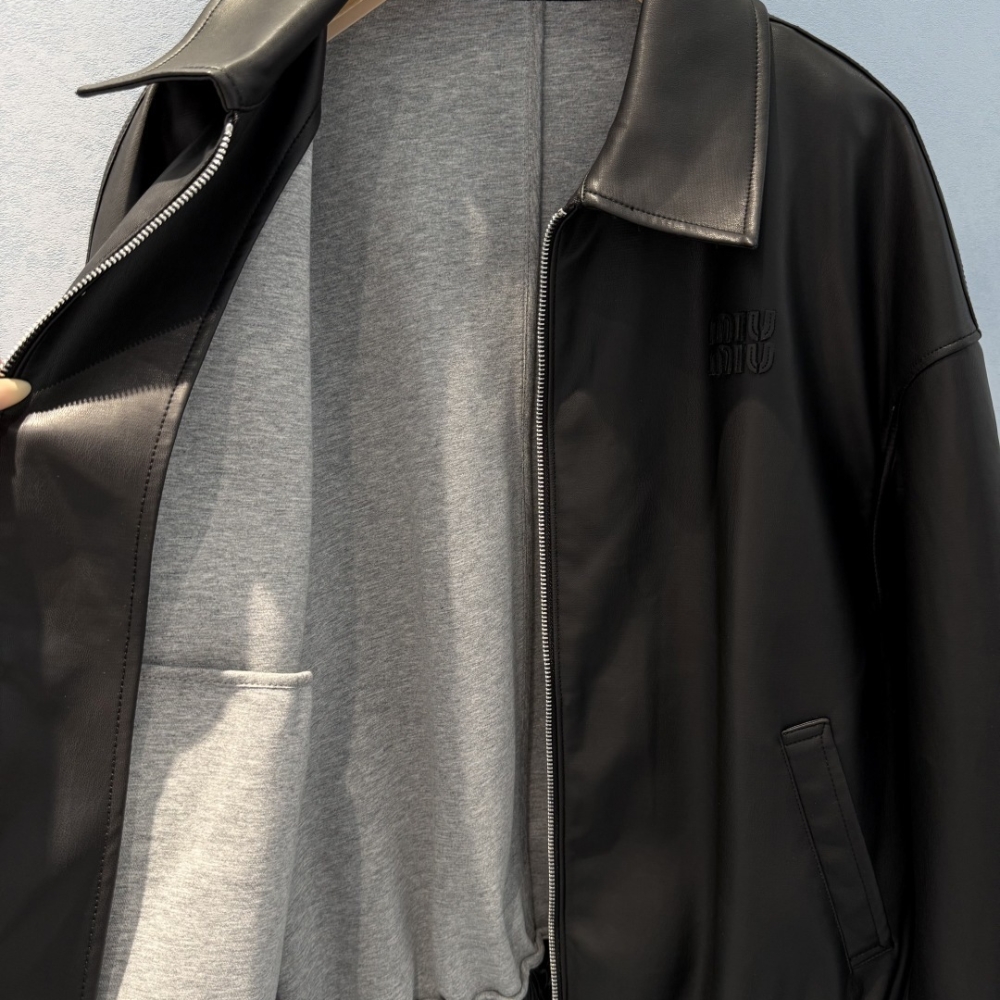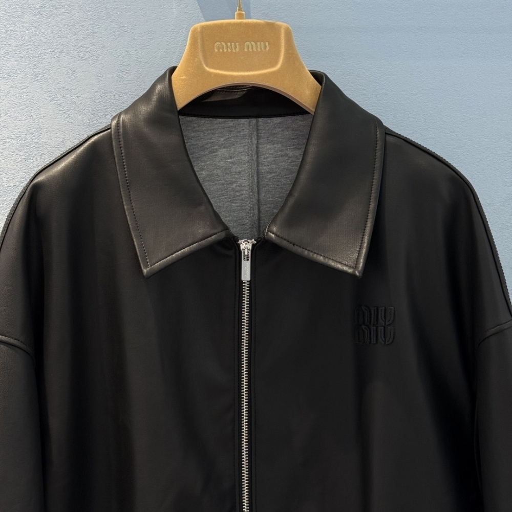 / MIUMIU PLONGÉ NAPPA LEATHER JACKET BLACK MPV947 17NH F0002 S OOO