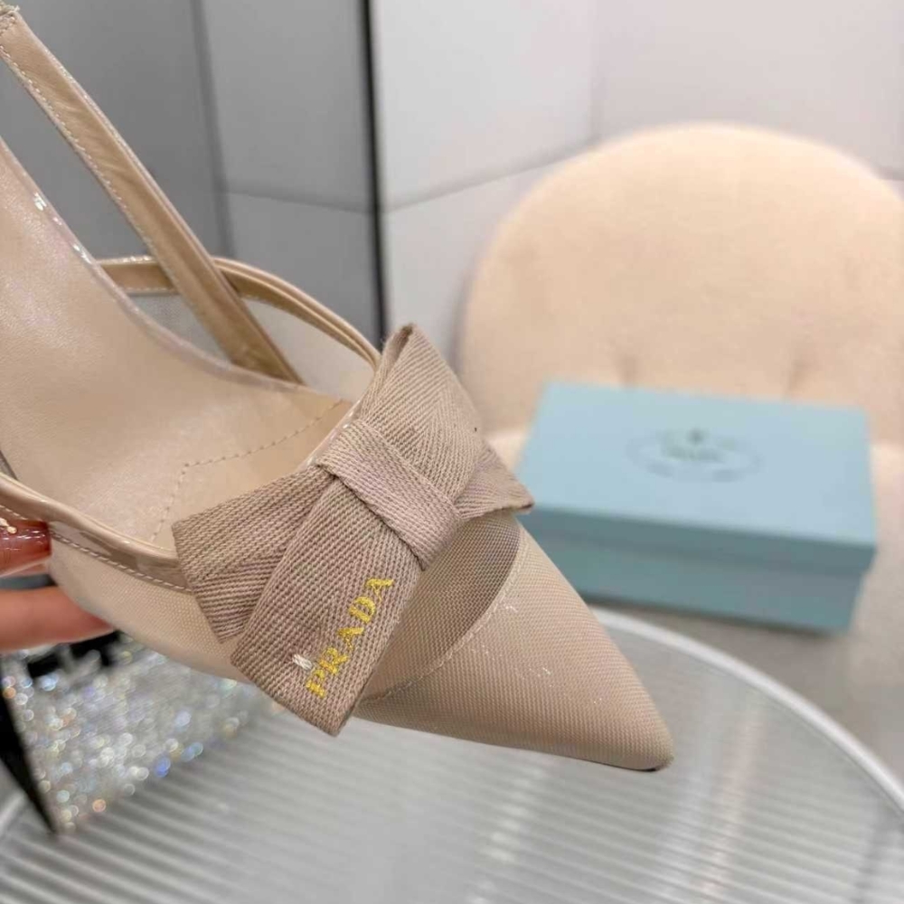 Prada Mesh Fabric Slingback Pumps In Beige quantity