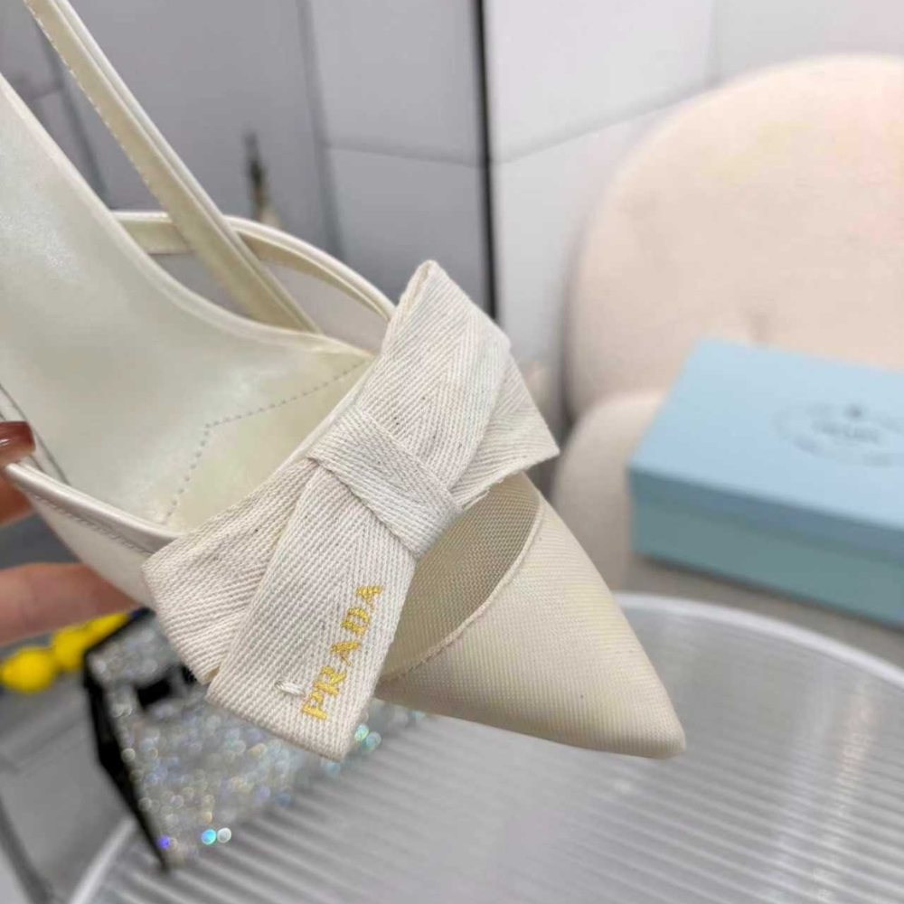 Prada Mesh Fabric Slingback Pumps In White quantity