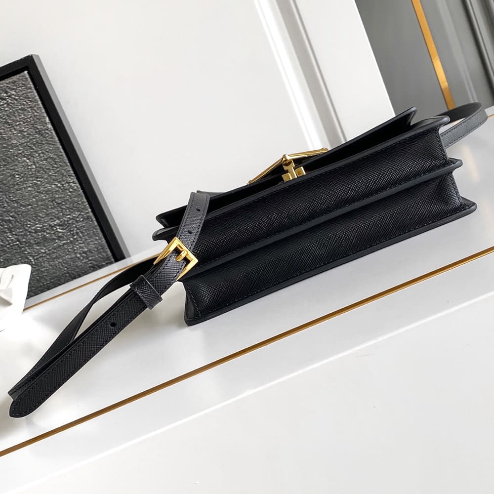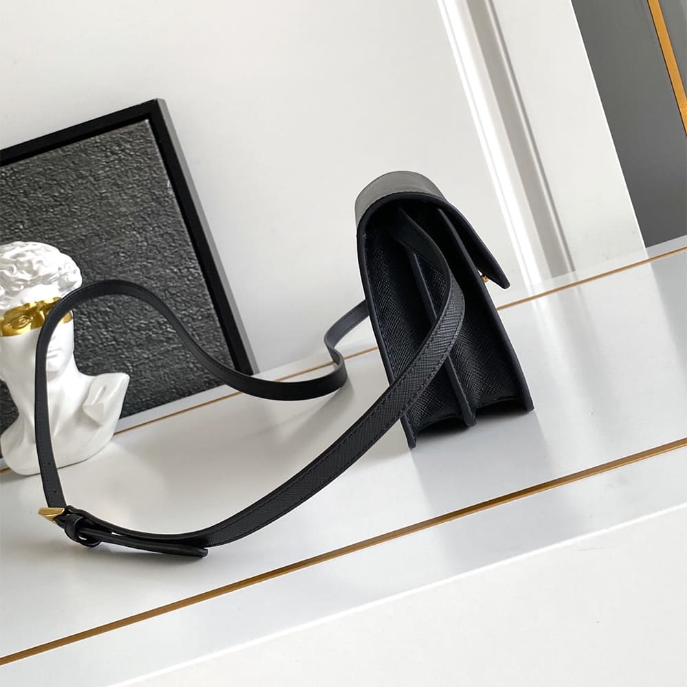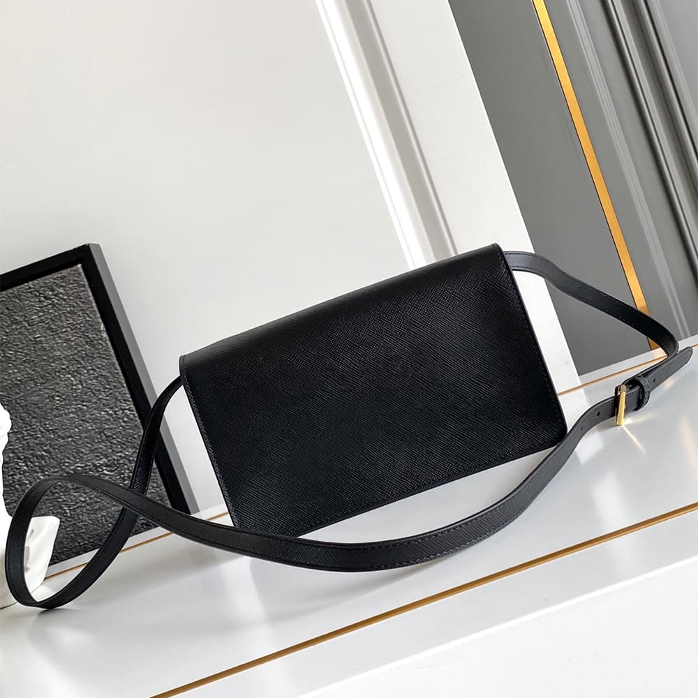 Adjustable Saffiano leather shoulder strap. Maximum length 119 cm – Minimum length: 109 cm – Maximum drop 60 cm- Minimum drop 50 cm