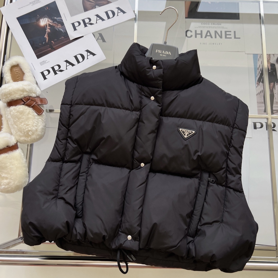 / PRADA RE NYLON CROPPED CONVERTIBLE DOWN JACKET BLACK 291805 11A9 F0002 S 222
