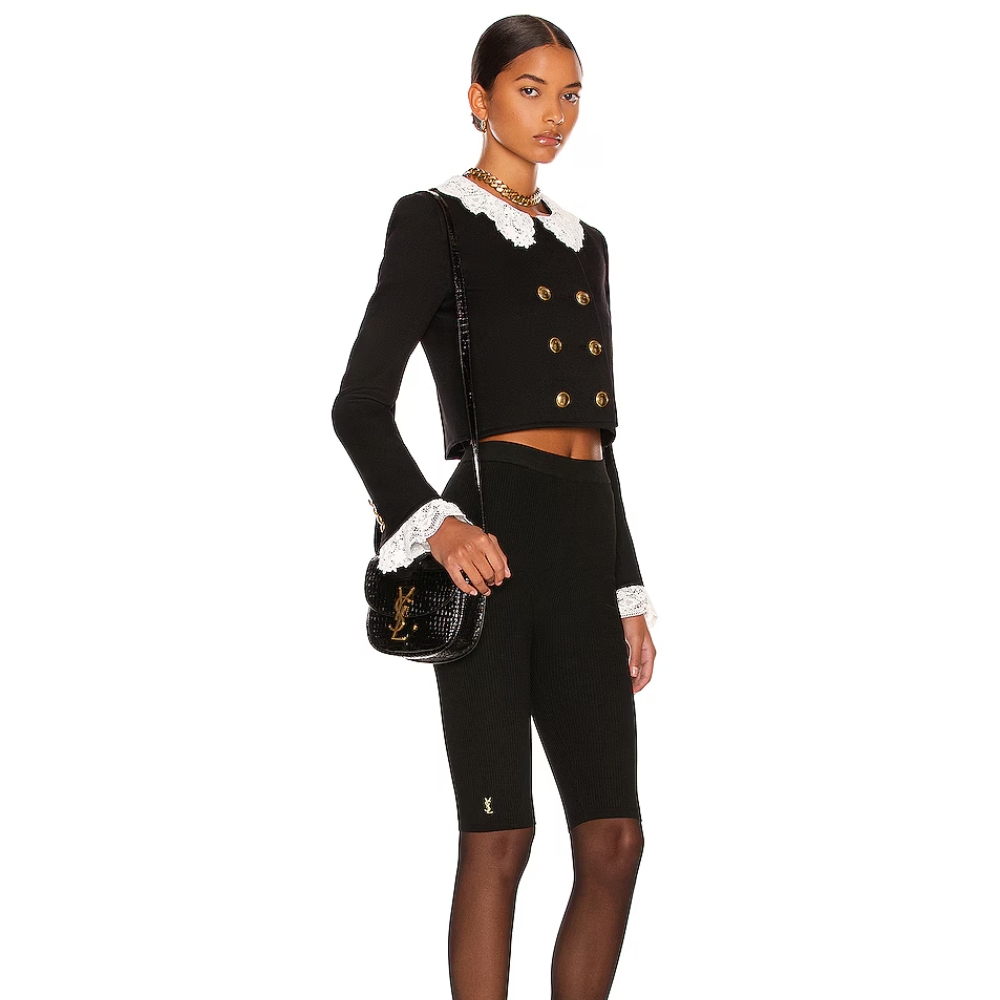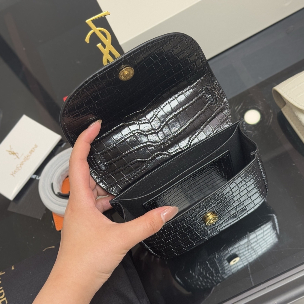 The Kaia Bag is a timelessly elegant accessory from Saint Laurent. Its structured shape is iterated in Black-embossed leather and punctuated with an antiqued gold-tone YSL monogram on the flap. Use the strap to sling it over your shoulder and watch how it adds sophistication to your outfits.