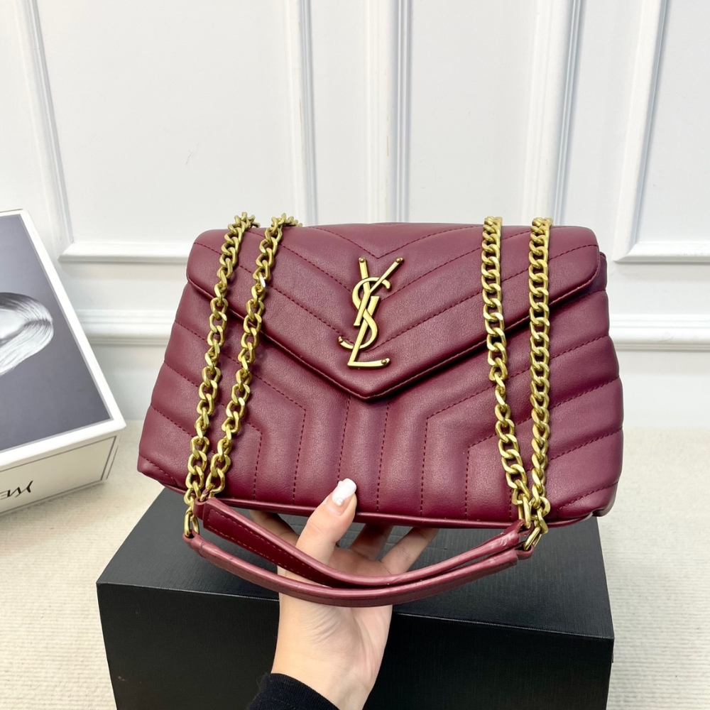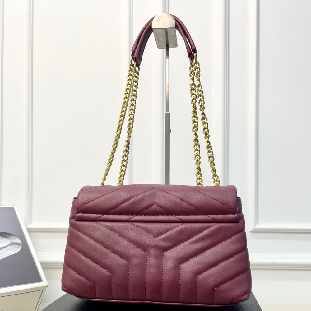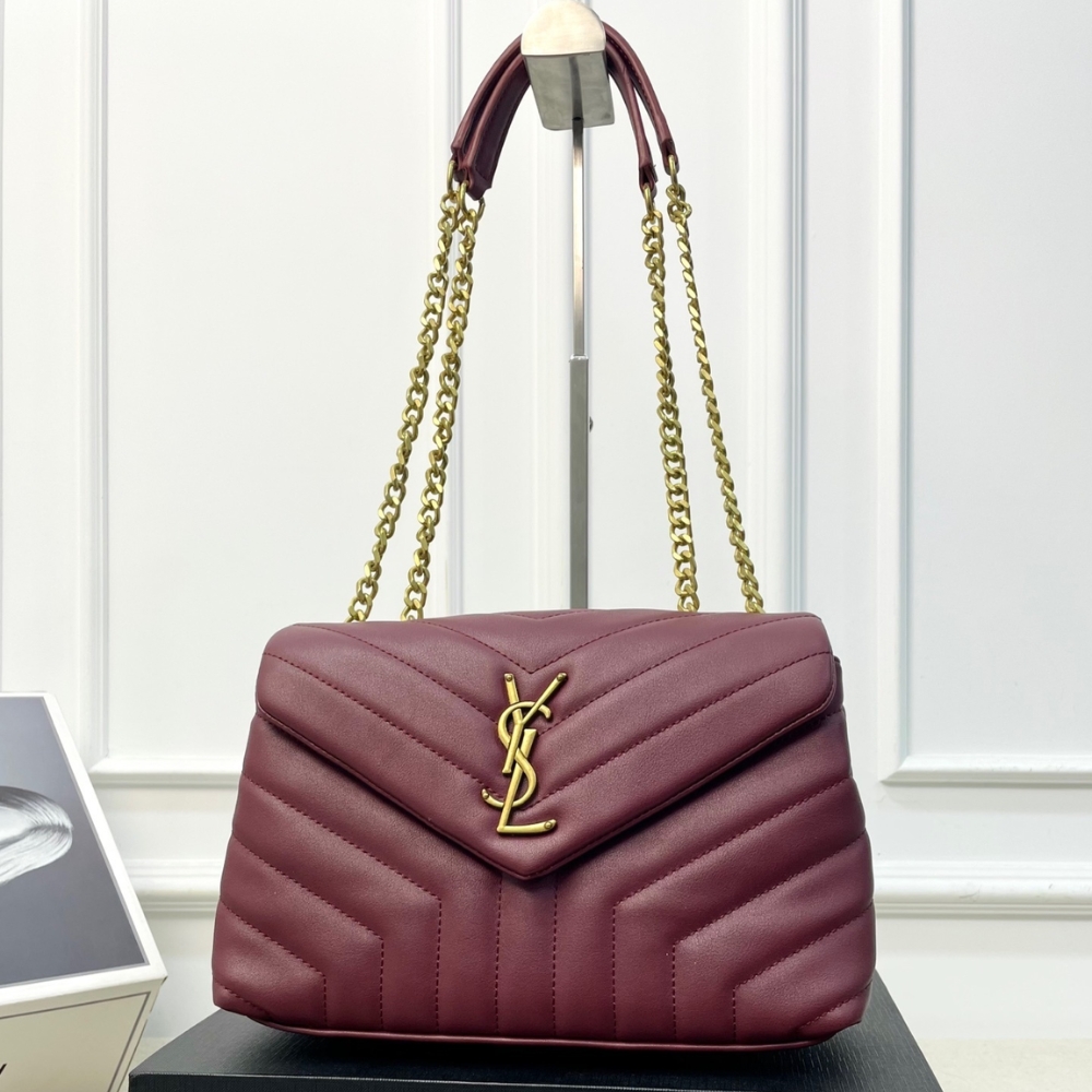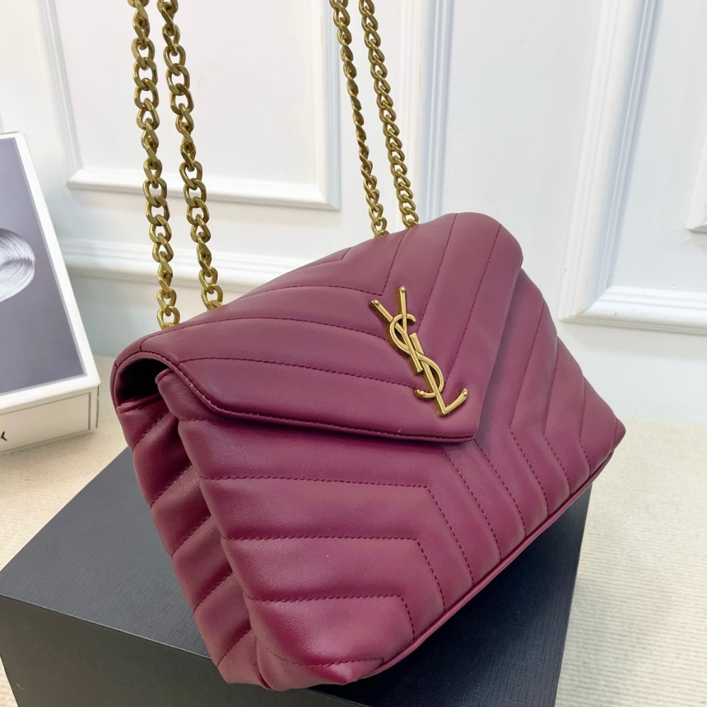Saint Laurent Loulou Medium Chain Bag In Matelassé Y Leather Burgundy Gold 26Cm