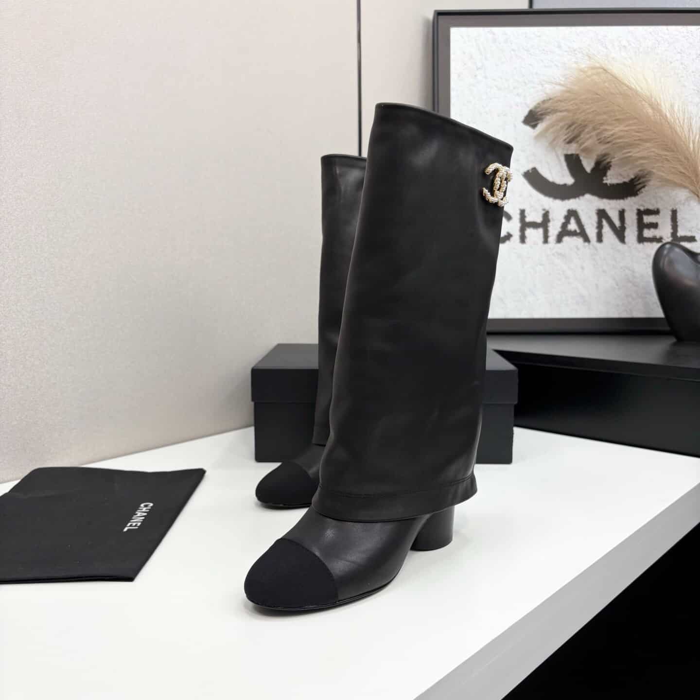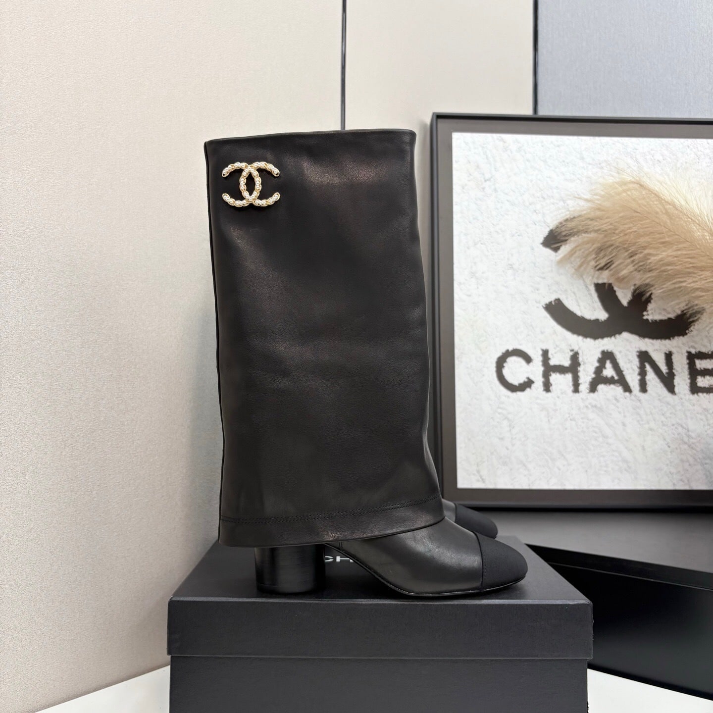 / [SUPER VIP 1:1] CHANEL HIGH BOOTS LEATHER AND GROSGRAIN BLACK G46677 B21755 94305