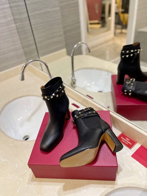 VALENTINO GARAVANI ROCKSTUD GRAINY CALFSKIN ANKLE BOOT BLACK 3W2S0P62VCE 0NO